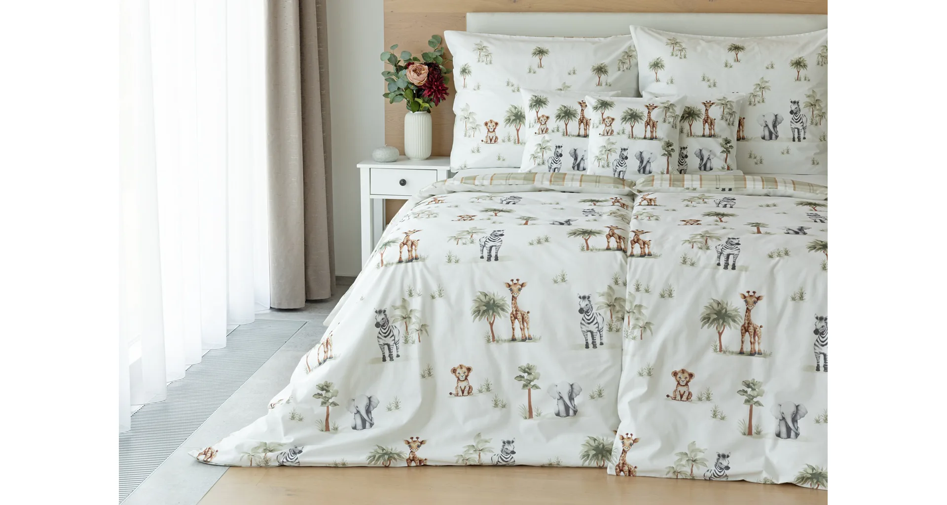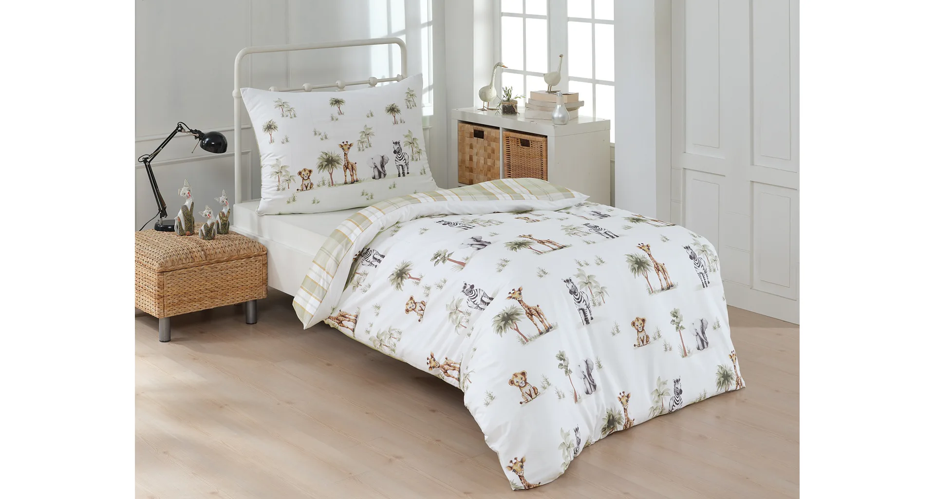 Premeňte detskú izbu na zábavné safari s bavlnenými obliečkami Happy! Rozkošný a hravý design je vďaka neutrálnej kombinácii farieb vhodný pre dievčatká aj chlapcov. O ich spokojný spánok sa postará hebká prvotriedna bavlna.