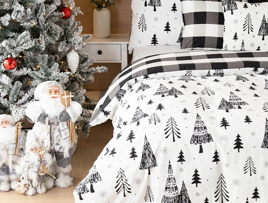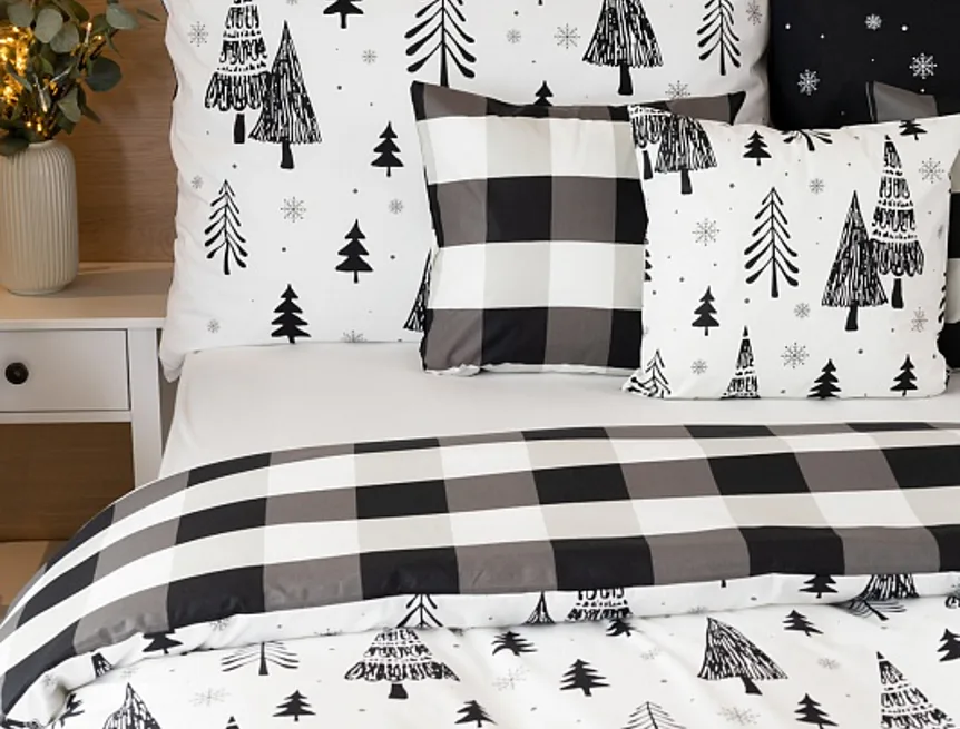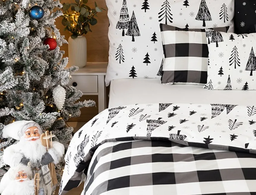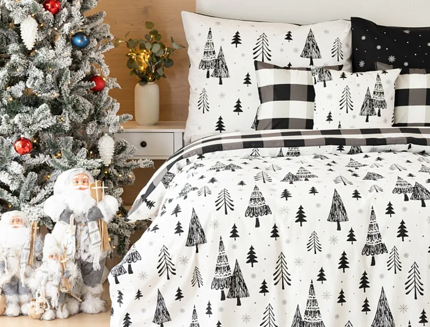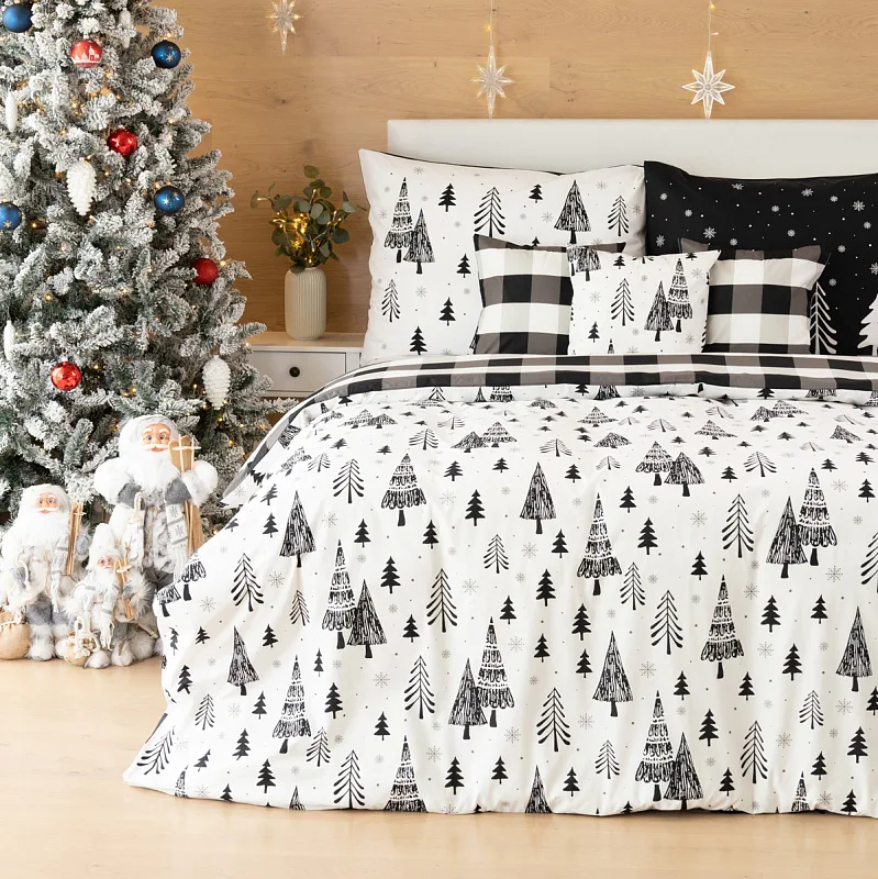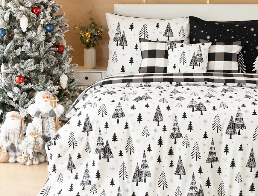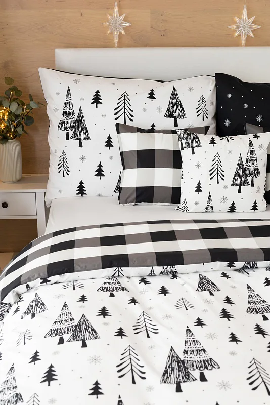 Čiernobielej spálni sa hodí každé ročné obdobie. S vianočnými obliečkami Holy bude vaša spálňa sviatočná a moderná zároveň. Vďaka kreatívnemu spracovaniu môžete pri stlaní experimentovať.