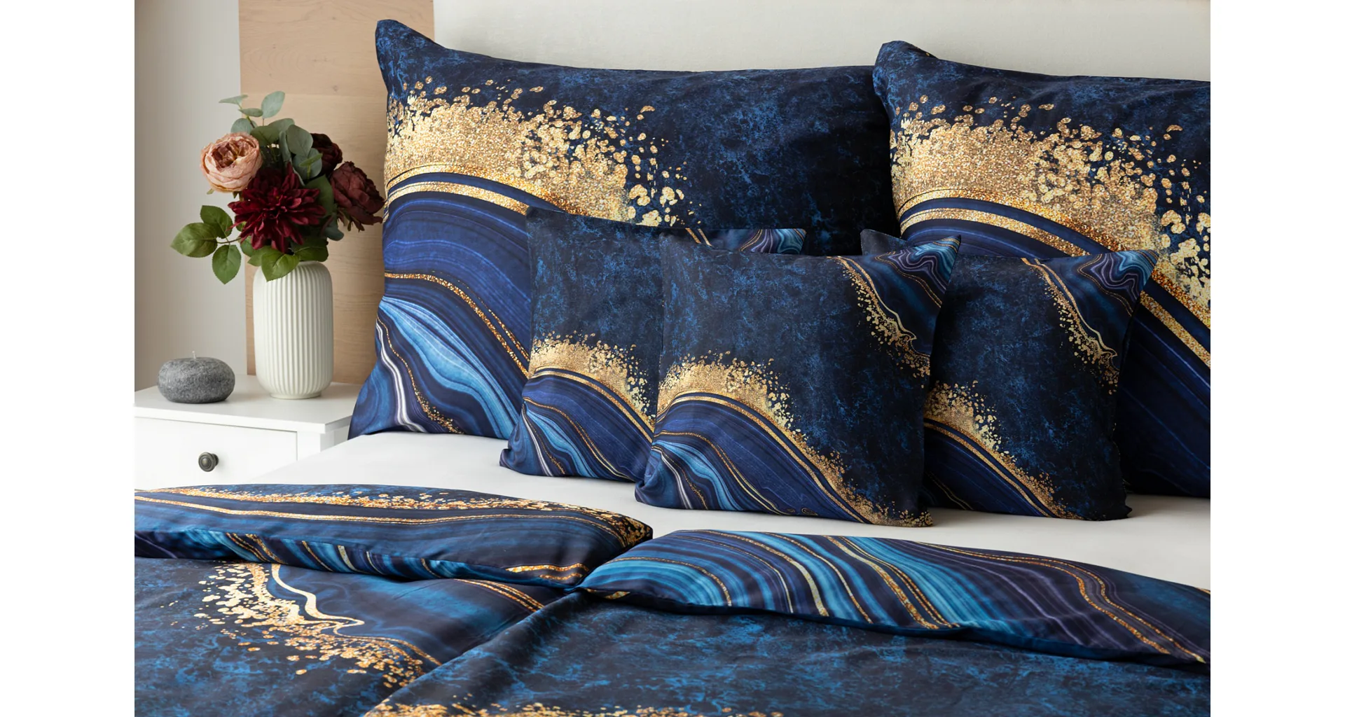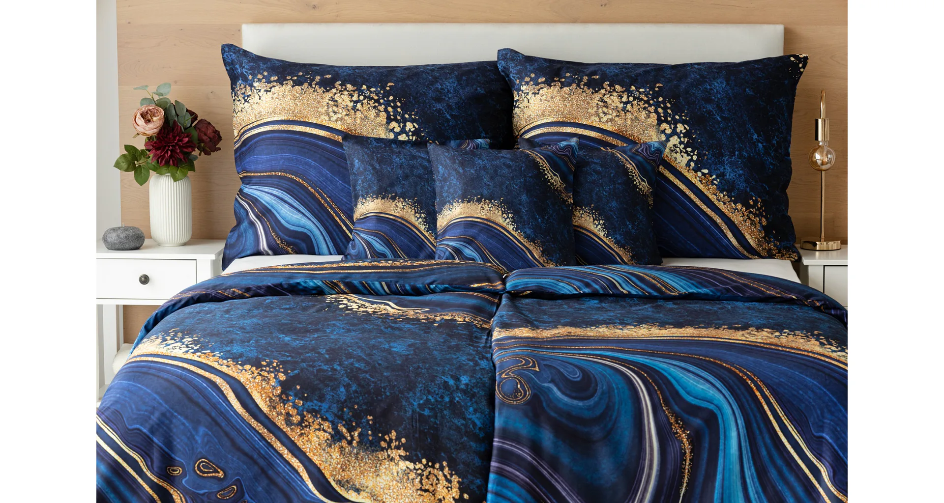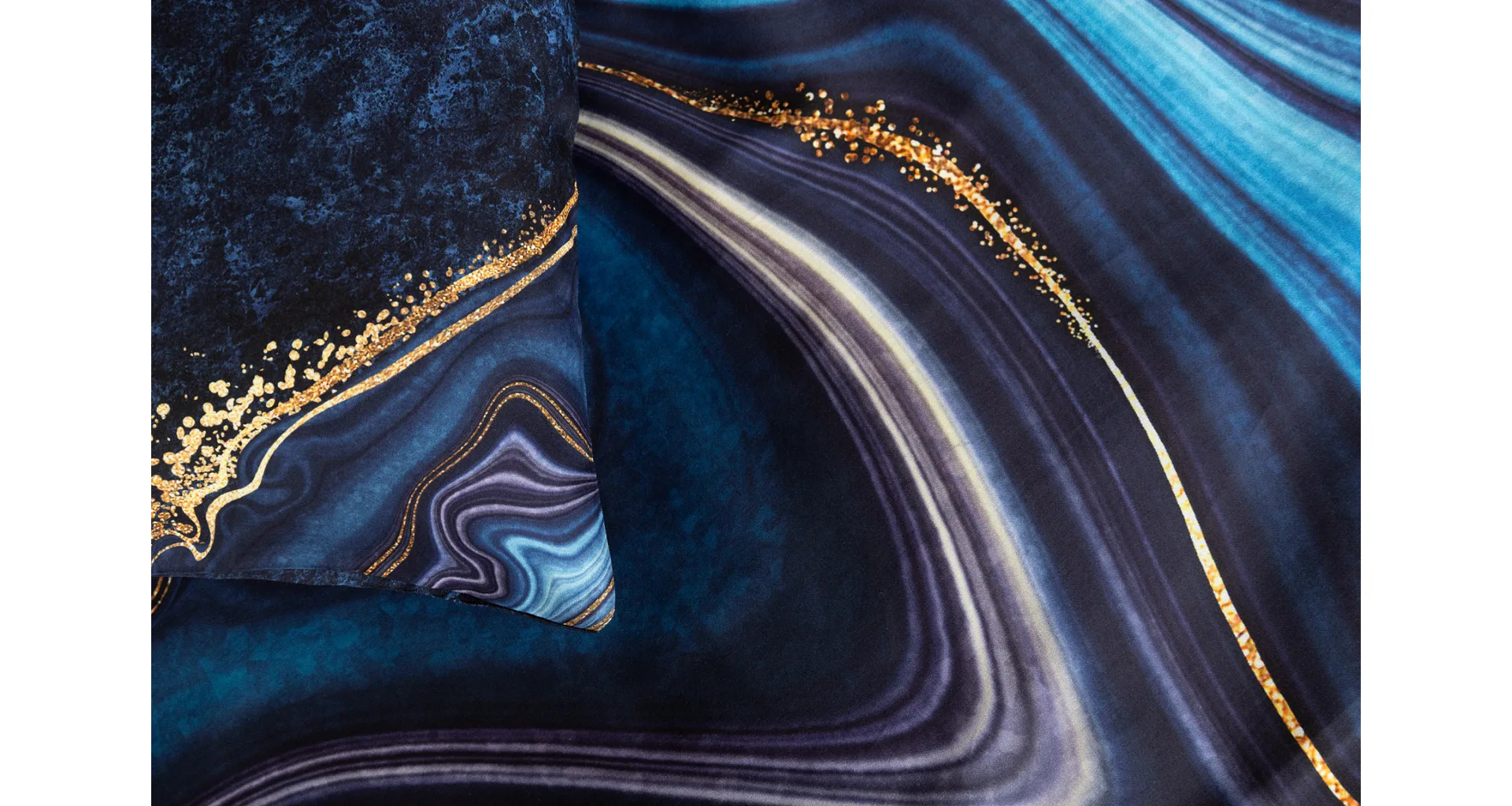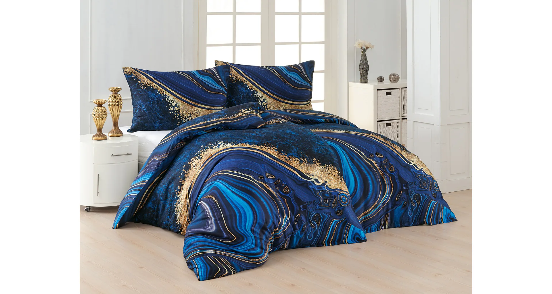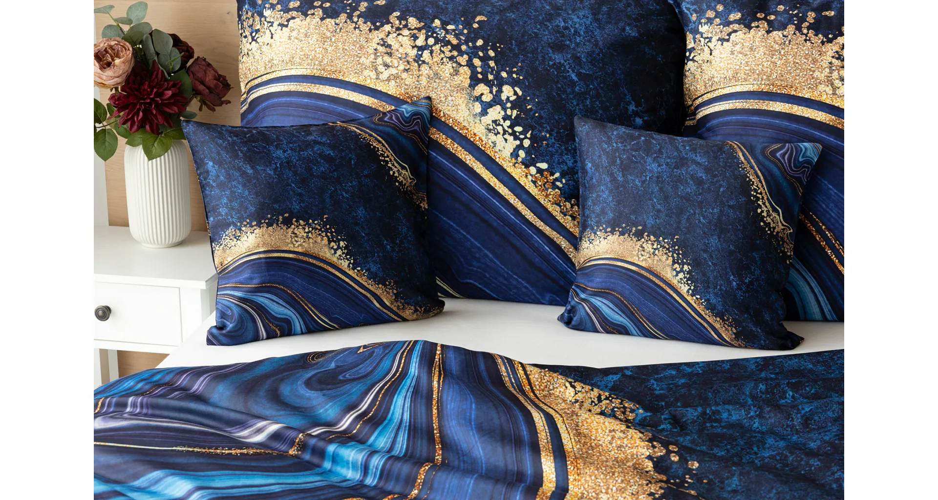 Posteľné obliečky Iris si jednoducho zamilujete. Abstraktnému vzoru dominujú odtiene modrej farby, ktorá pôsobí na ľudskú myseľ kľudne a harmonicky. Prináša atmosféru stability a tradície. K modrej farbe sa hodí kombinácia so zlatou, vďaka ktorej získava noblesný nádych. A presne tieto odtiene farieb má vzor obliečok Iris, ktorých eleganciu podtrháva hebký bavlnený satén vyrobený zo 100% bavlny.