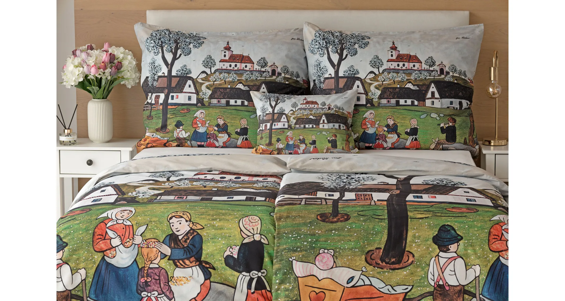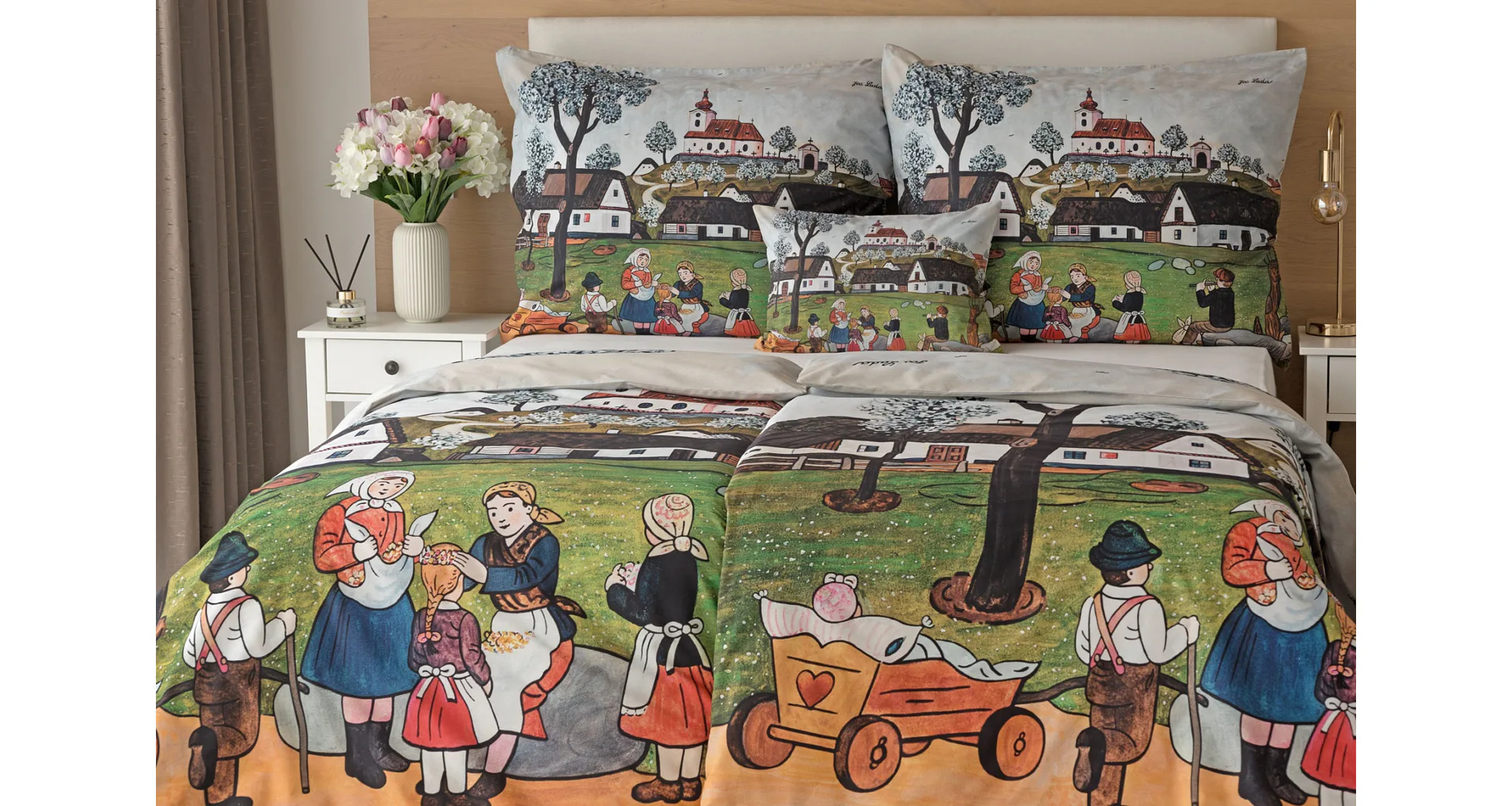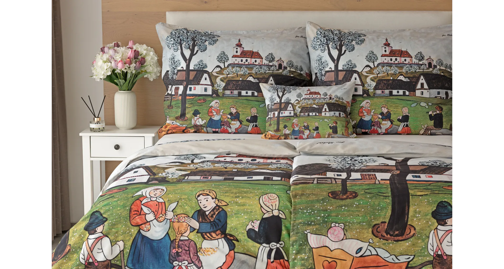 Pozvite k sebe domov kúzlo nestarnúcich kresieb Josefa Lady, ktoré sú pre mnohých z nás symbolom detstva, harmonickej dediny a českej tradície. Sviežu jarnú atmosféru do vašej spálne vnesú bavlnené obliečky Jar na dedine.