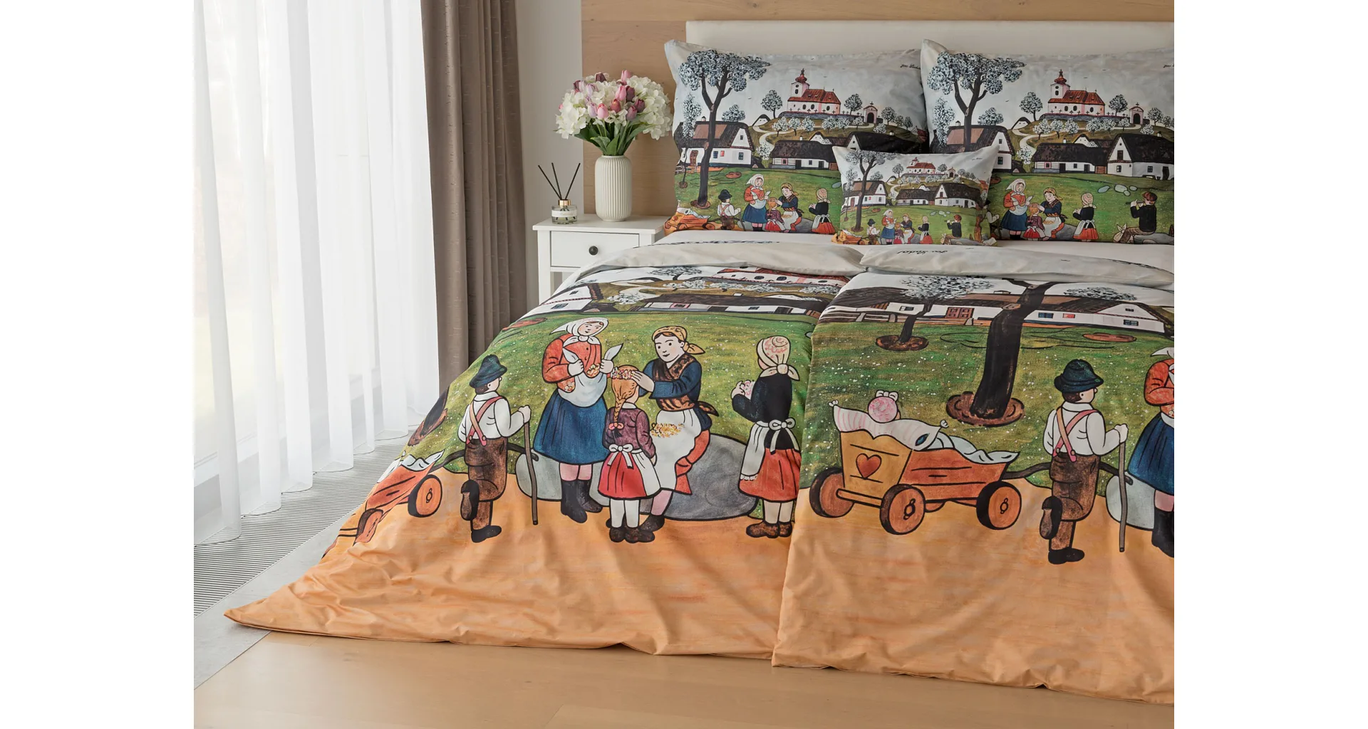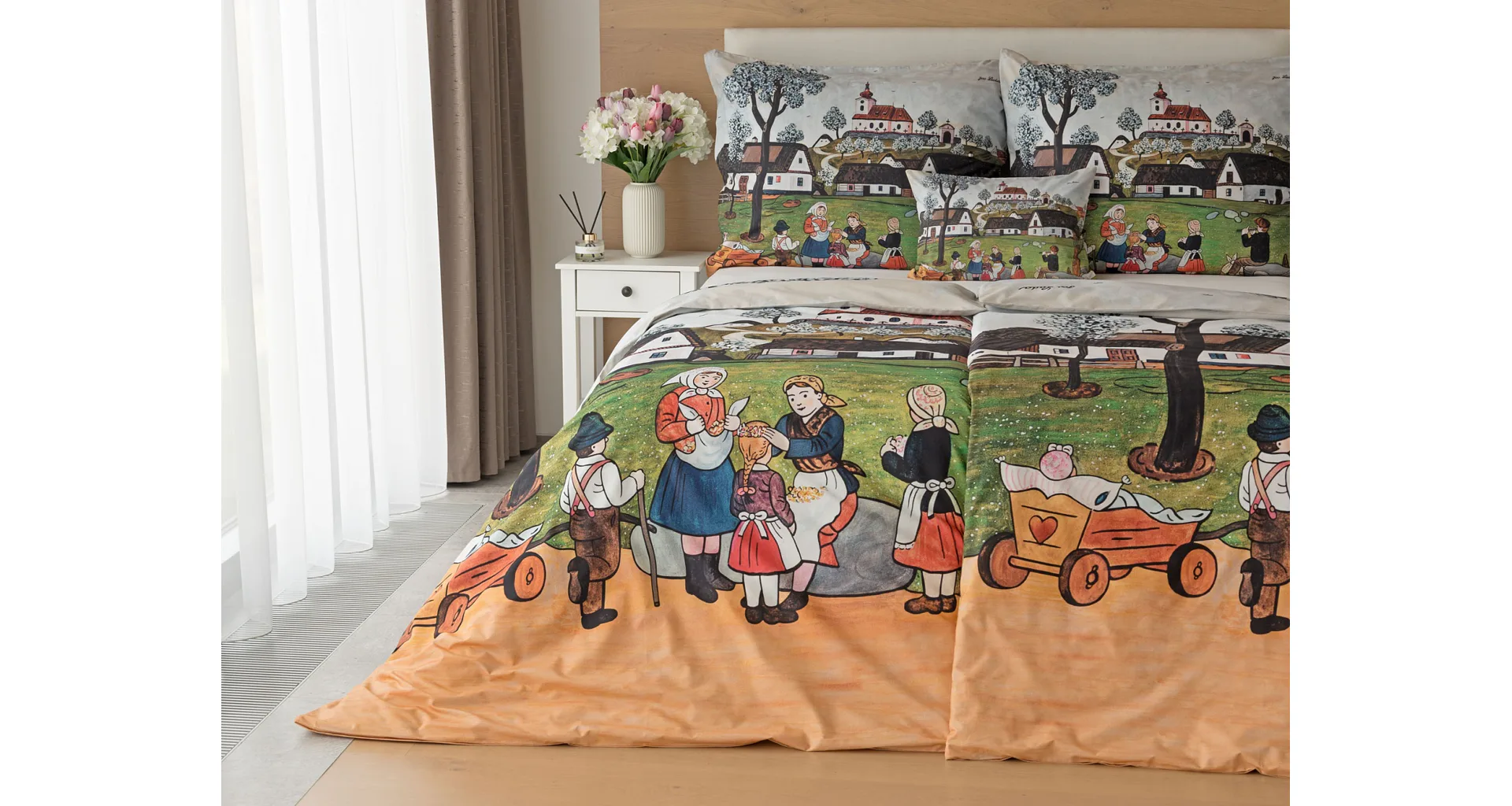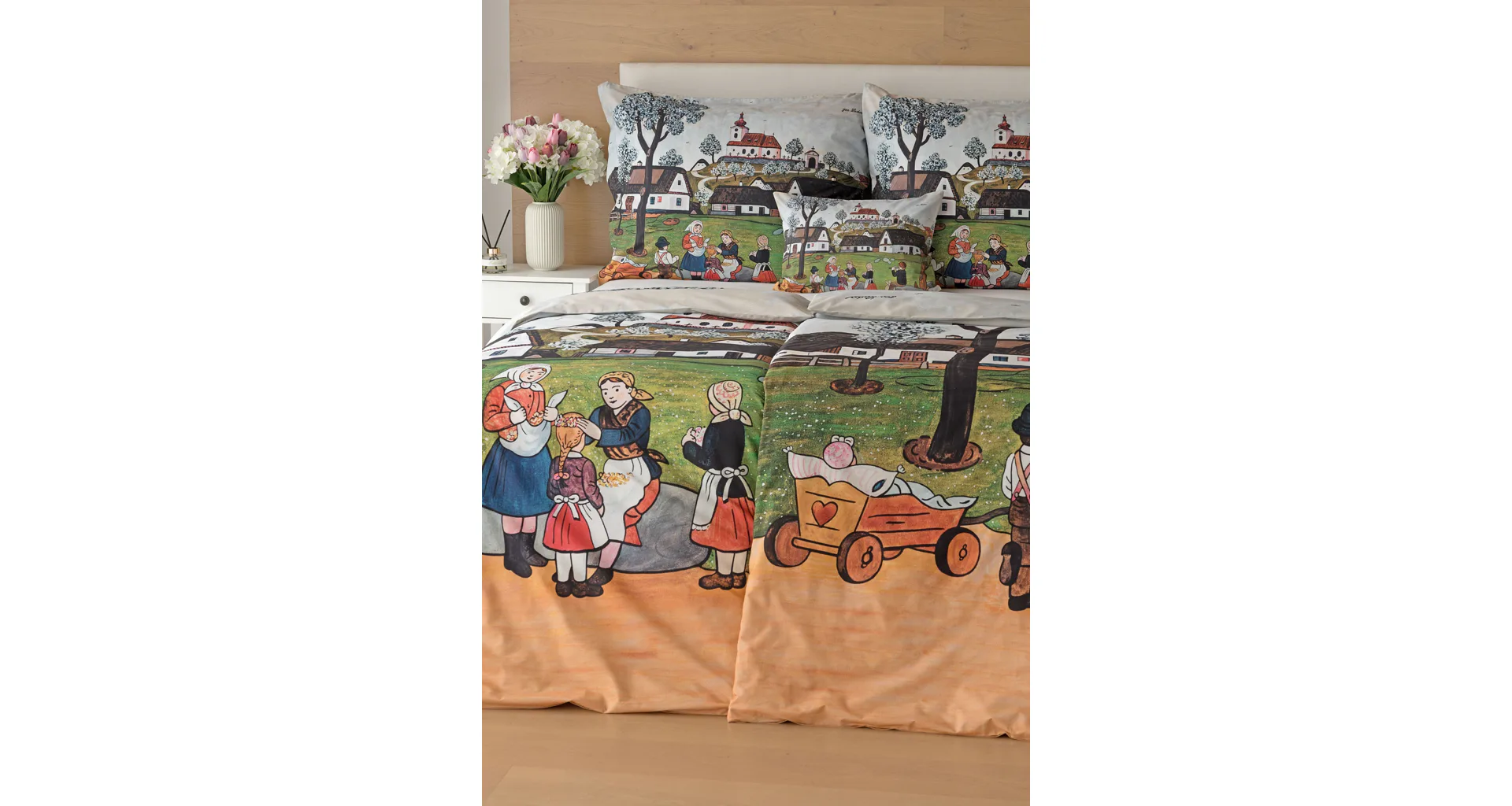 Pozvite k sebe domov kúzlo nestarnúcich kresieb Josefa Lady, ktoré sú pre mnohých z nás symbolom detstva, harmonickej dediny a českej tradície. Sviežu jarnú atmosféru do vašej spálne vnesú bavlnené obliečky Jar na dedine.