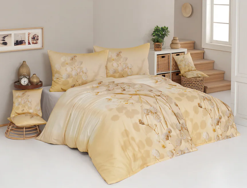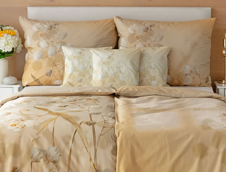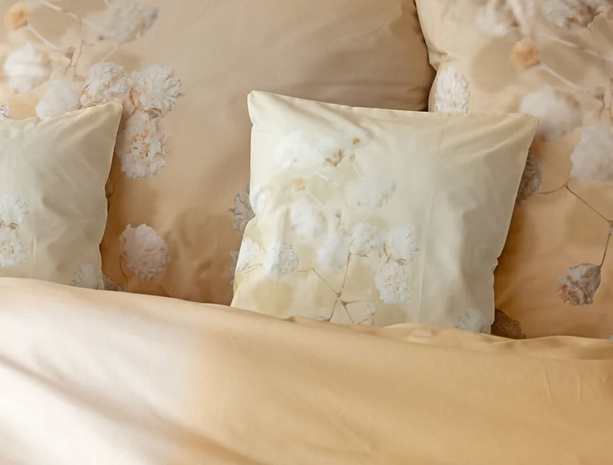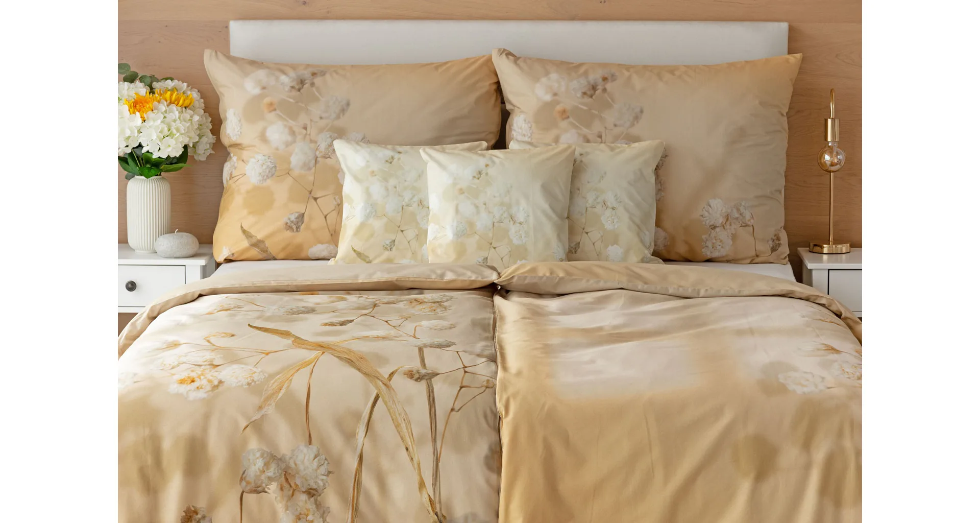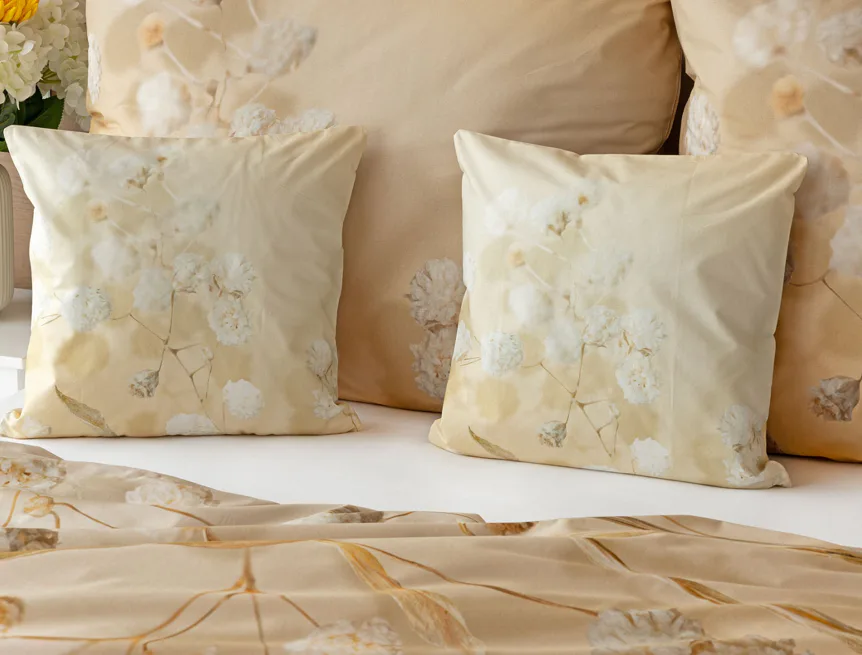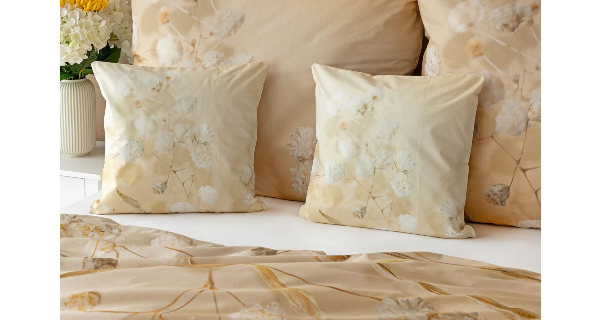 Luxusné bavlnené obliečky Julia úplne zvádzajú k zachumlaniu. Nežný florálny motív v hrejivých krémových a béžových tónoch bude vynikať v každom interiéri.