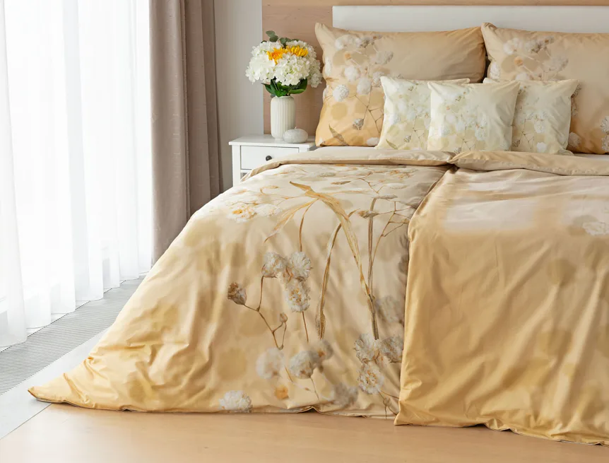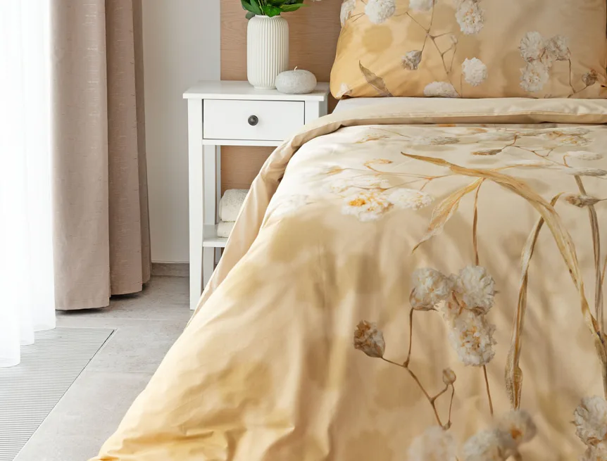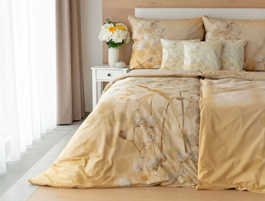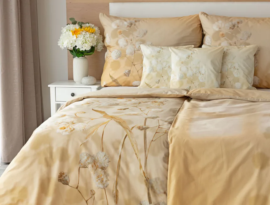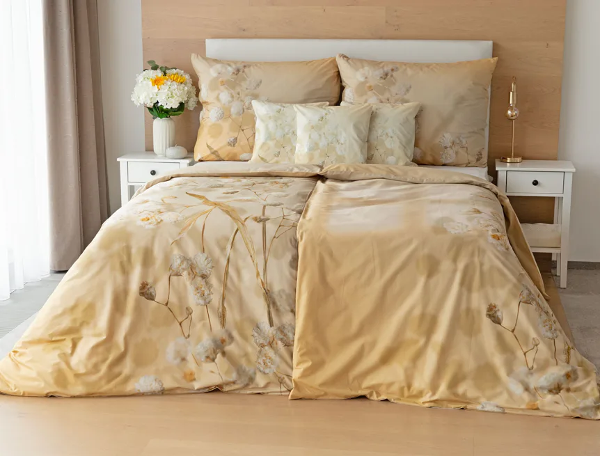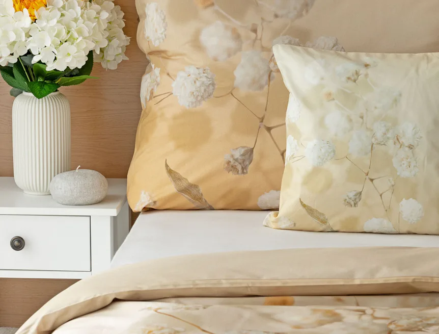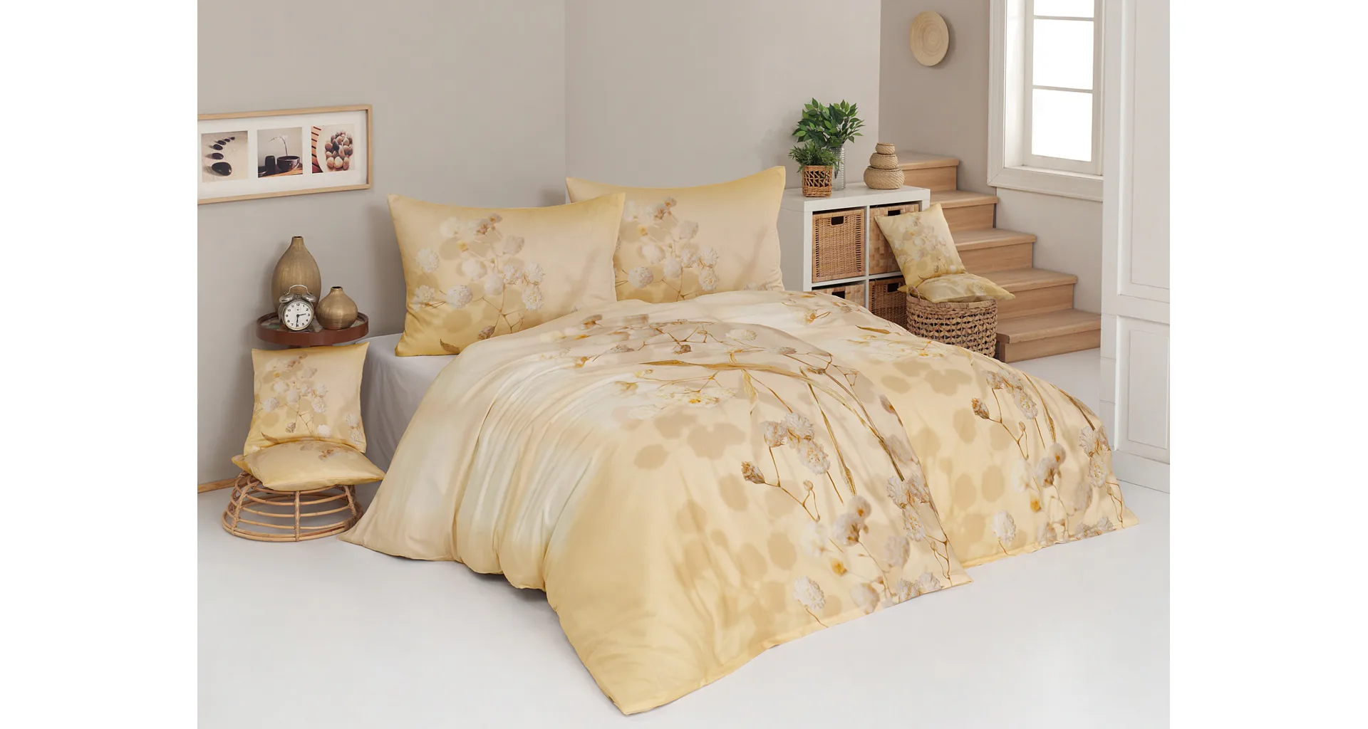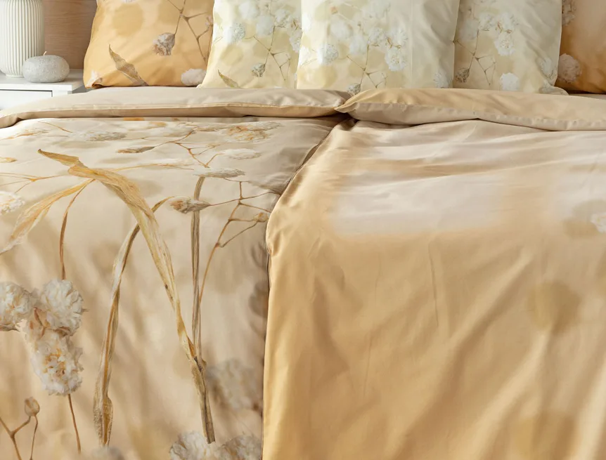 Luxusné bavlnené obliečky Julia úplne zvádzajú k zachumlaniu. Nežný florálny motív v hrejivých krémových a béžových tónoch bude vynikať v každom interiéri.
