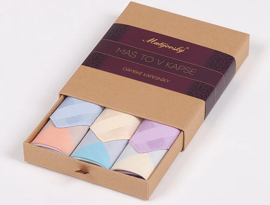 Elegance dotažená do posledního detailu. Tradiční bavlněný kapesník je nejen praktickým pomocníkem v celé řadě každodenních okamžiků, ale také symbolem elegance a vytříbeného stylu. Sada tří barevně sladěných látkových kapesníků, které vynikají hebkostí a savostí, se i díky originálnímu balení stane ideálním dárkem pro každou dámu.