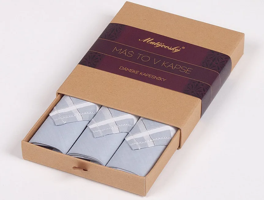 Elegance dotažená do posledního detailu. Tradiční bavlněný kapesník je nejen praktickým pomocníkem v celé řadě každodenních okamžiků, ale také symbolem elegance a vytříbeného stylu. Sada tří barevně sladěných látkových kapesníků, které vynikají hebkostí a savostí, se i díky originálnímu balení stane ideálním dárkem pro každou dámu.