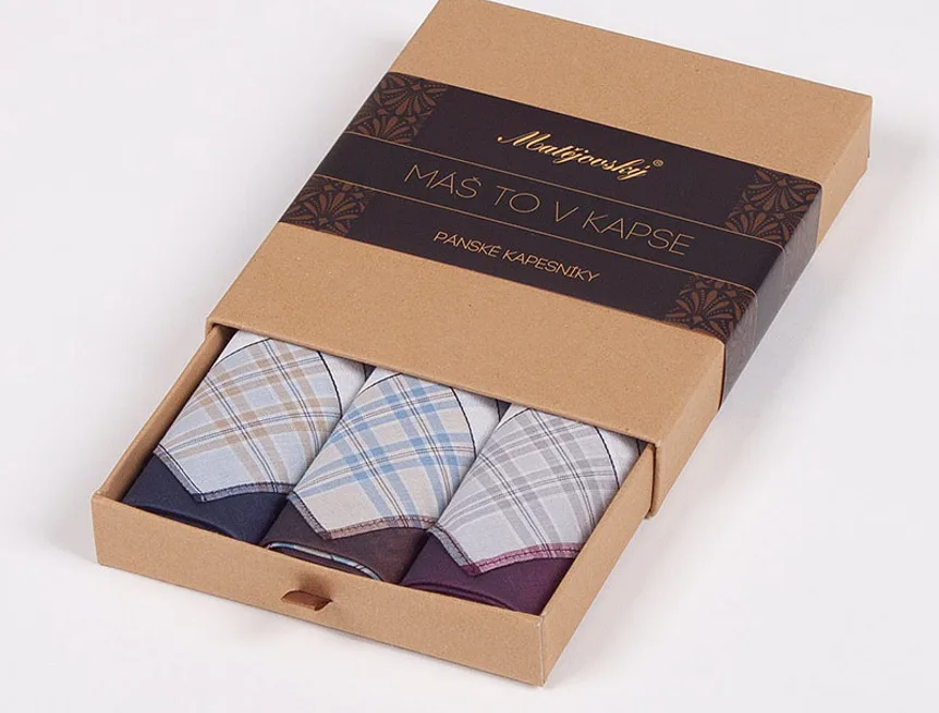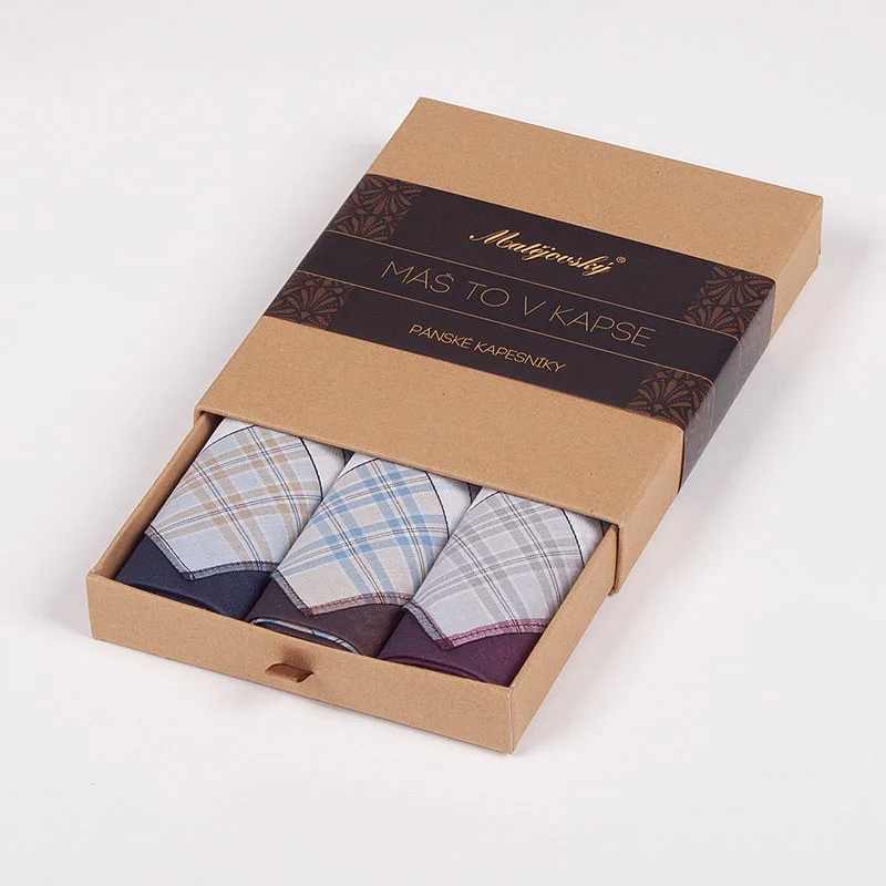 Elegance dotažená do posledního detailu. Tradiční bavlněný kapesník je nejen praktickým pomocníkem v celé řadě každodenních okamžiků, ale také symbolem elegance a vytříbeného stylu. Sada tří barevně sladěných látkových kapesníků, které vynikají hebkostí a savostí, se i díky originálnímu balení stane ideálním dárkem pro moderního gentlemana.