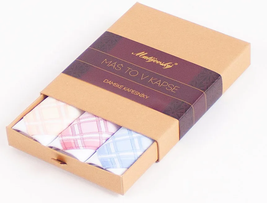Elegance dotažená do posledního detailu. Tradiční bavlněný kapesník je nejen praktickým pomocníkem v celé řadě každodenních okamžiků, ale také symbolem elegance a vytříbeného stylu. Sada tří barevně sladěných látkových kapesníků, které vynikají hebkostí a savostí, se i díky originálnímu balení stane ideálním dárkem pro každou dámu.