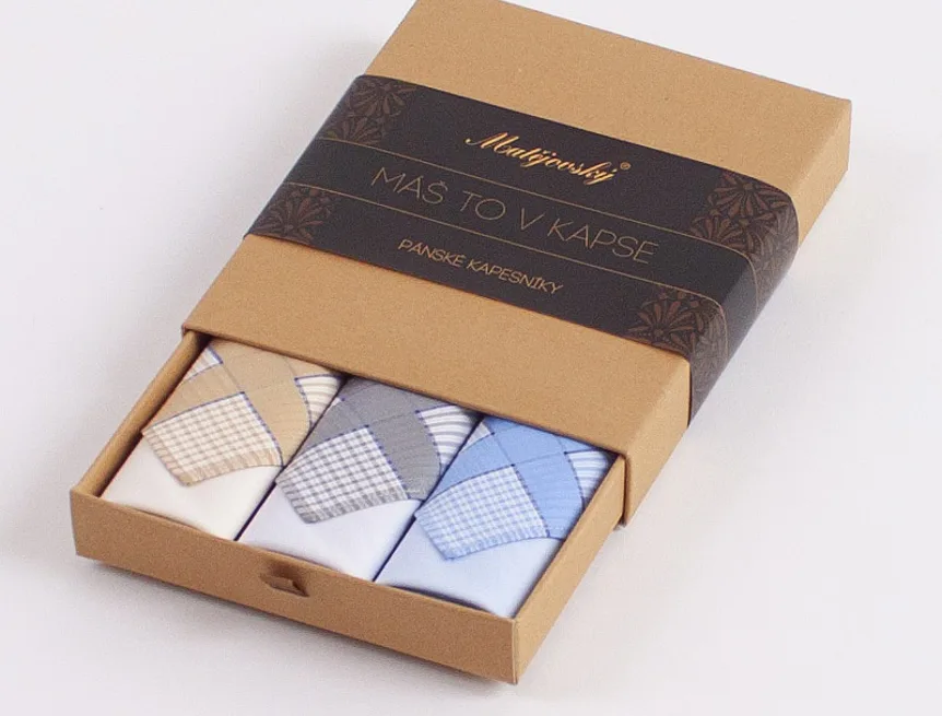 Elegance dotažená do posledního detailu. Tradiční bavlněný kapesník je nejen praktickým pomocníkem v celé řadě každodenních okamžiků, ale také symbolem elegance a vytříbeného stylu. Sada tří barevně sladěných látkových kapesníků, které vynikají hebkostí a savostí, se i díky originálnímu balení stane ideálním dárkem pro moderního gentlemana.