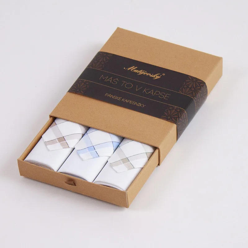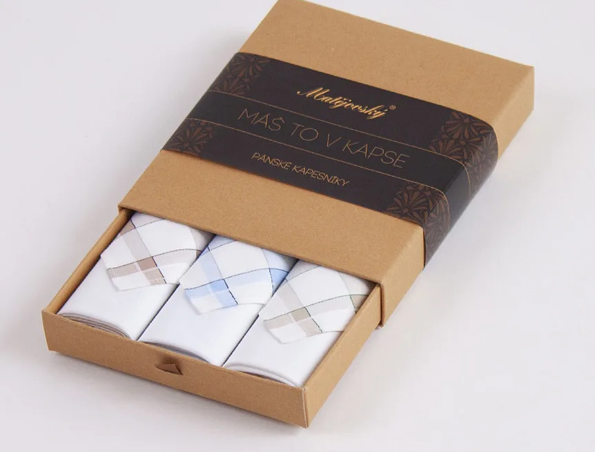 Elegance dotažená do posledního detailu. Tradiční bavlněný kapesník je nejen praktickým pomocníkem v celé řadě každodenních okamžiků, ale také symbolem elegance a vytříbeného stylu. Sada tří barevně sladěných látkových kapesníků, které vynikají hebkostí a savostí, se i díky originálnímu balení stane ideálním dárkem pro moderního gentlemana.