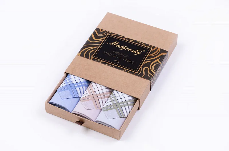 Elegance dotažená do posledního detailu. Tradiční bavlněný kapesník je nejen praktickým pomocníkem v celé řadě každodenních okamžiků, ale také symbolem elegance a vytříbeného stylu. Sada tří barevně sladěných látkových kapesníků, které vynikají hebkostí a savostí, se i díky originálnímu balení stane ideálním dárkem pro moderního gentlemana.