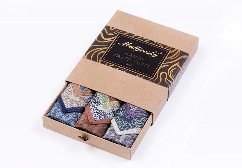 Elegance dotažená do posledního detailu. Tradiční bavlněný kapesník je nejen praktickým pomocníkem v celé řadě každodenních okamžiků, ale také symbolem elegance a vytříbeného stylu. Sada tří barevně sladěných látkových kapesníků, které vynikají hebkostí a savostí, se i díky originálnímu balení stane ideálním dárkem pro moderního gentlemana.