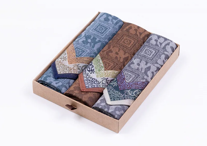 Jedinečný design těchto bavlněných kapesníků podtrhuje vytkaná žakárová struktura.