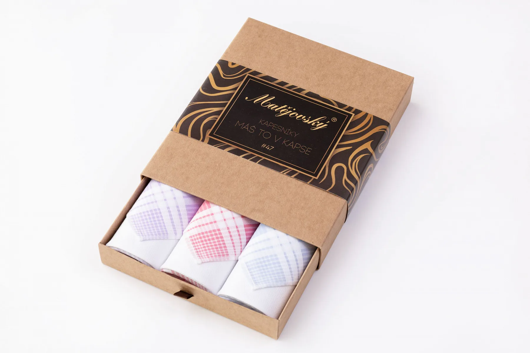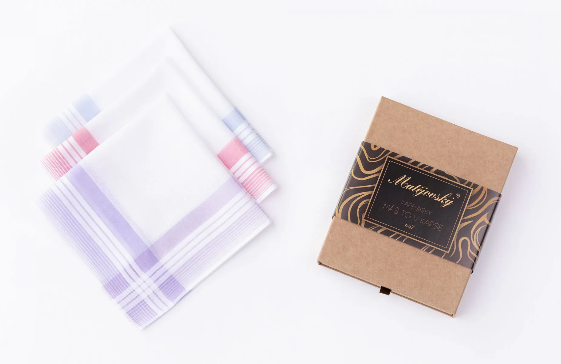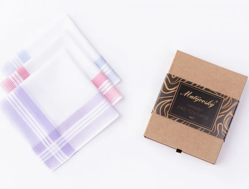 Elegance dotažená do posledního detailu. Tradiční bavlněný kapesník je nejen praktickým pomocníkem v celé řadě každodenních okamžiků, ale také symbolem elegance a vytříbeného stylu. Sada tří barevně sladěných látkových kapesníků, které vynikají hebkostí a savostí, se i díky originálnímu balení stane ideálním dárkem pro každou dámu.