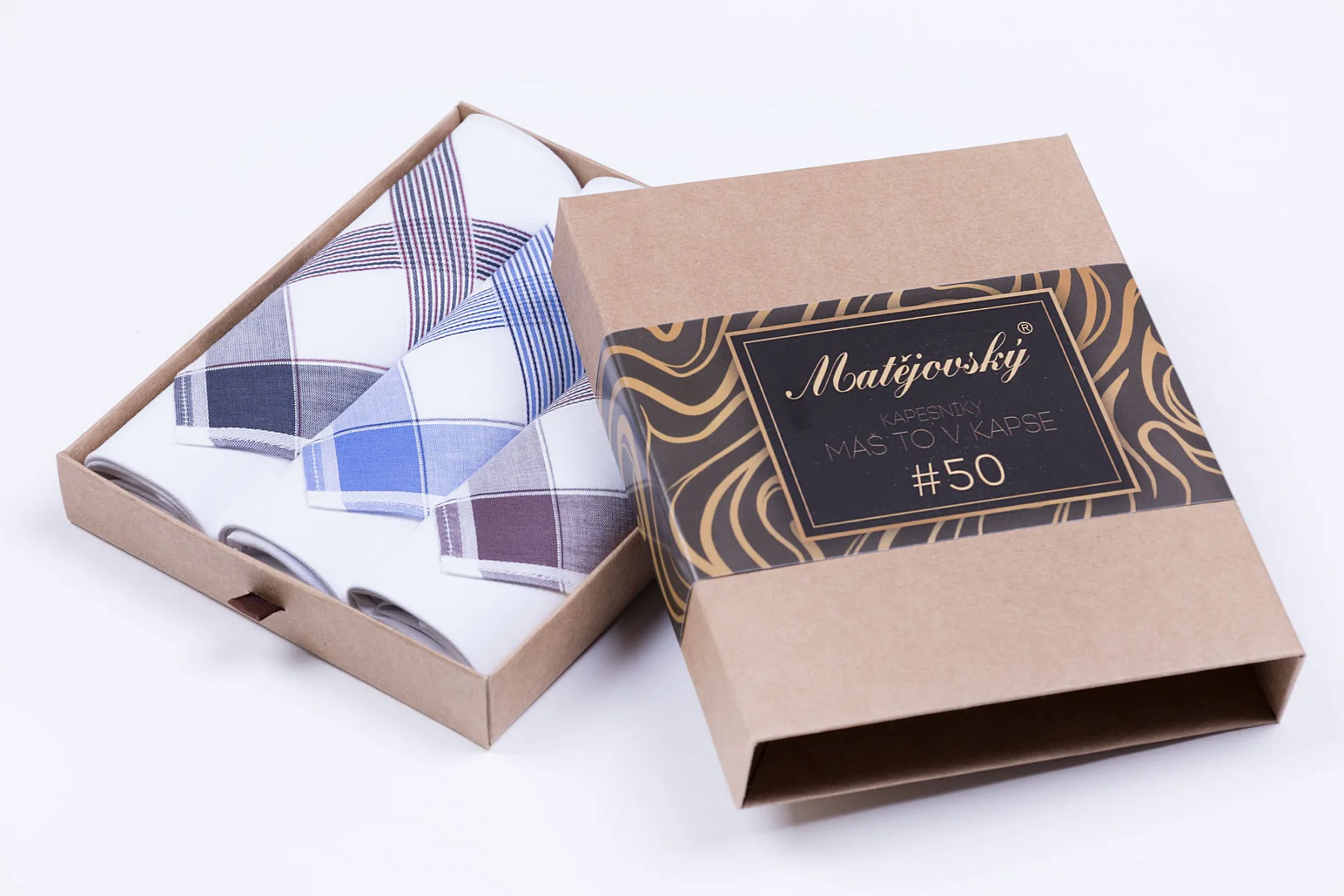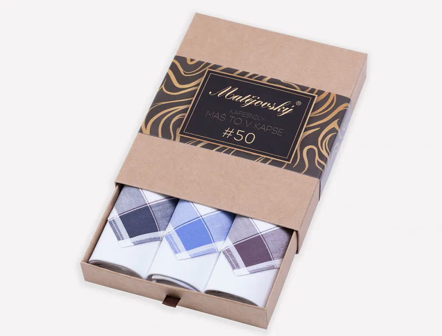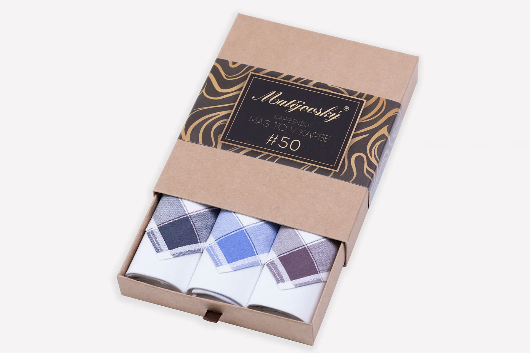 Elegance dotažená do posledního detailu. Tradiční bavlněný kapesník je nejen praktickým pomocníkem v celé řadě každodenních okamžiků, ale také symbolem elegance a vytříbeného stylu. Sada tří barevně sladěných látkových kapesníků, které vynikají hebkostí a savostí, se i díky originálnímu balení stane ideálním dárkem pro moderního gentlemana.