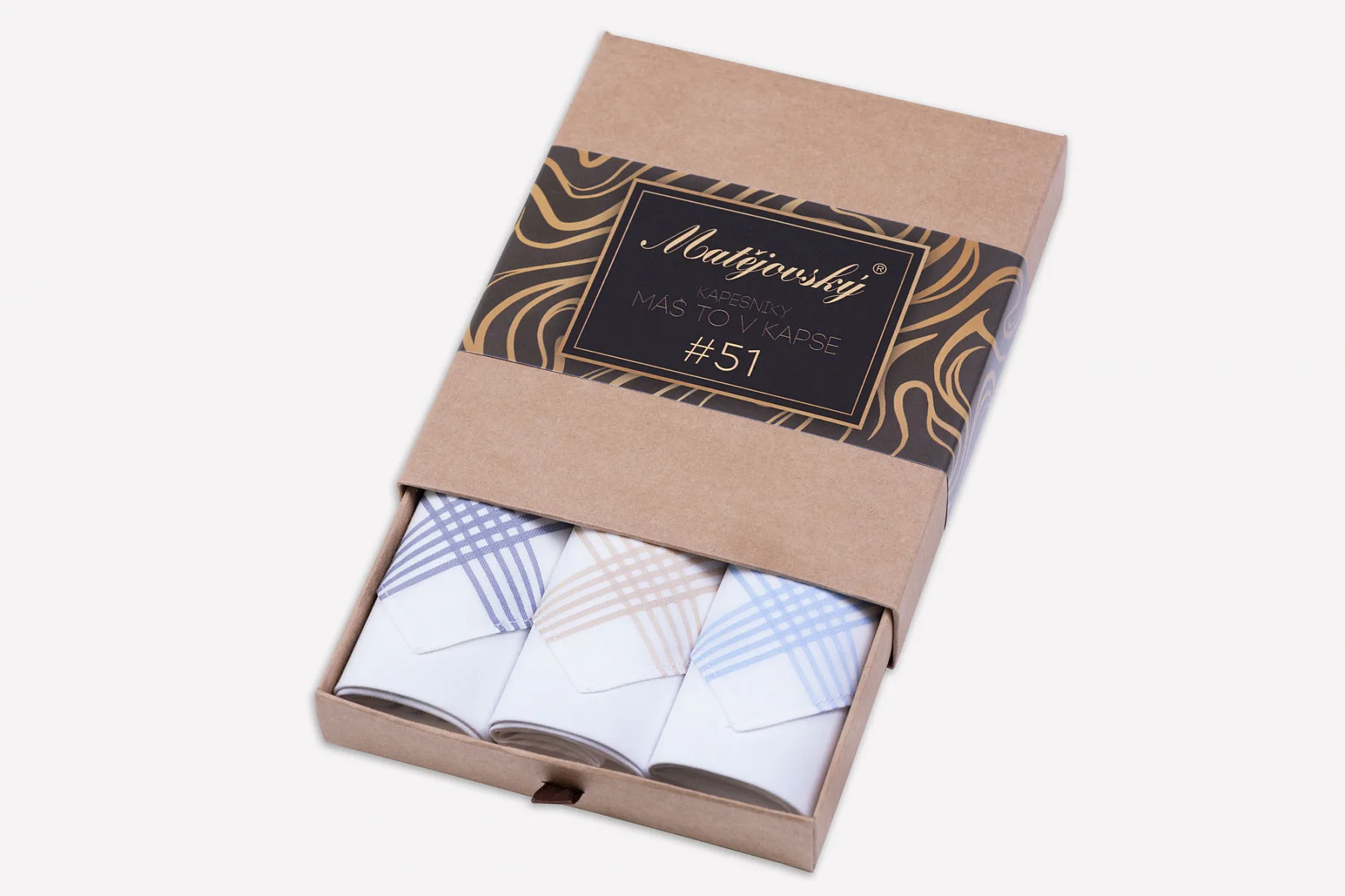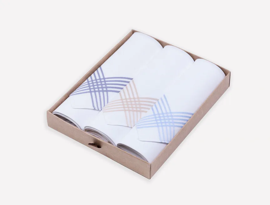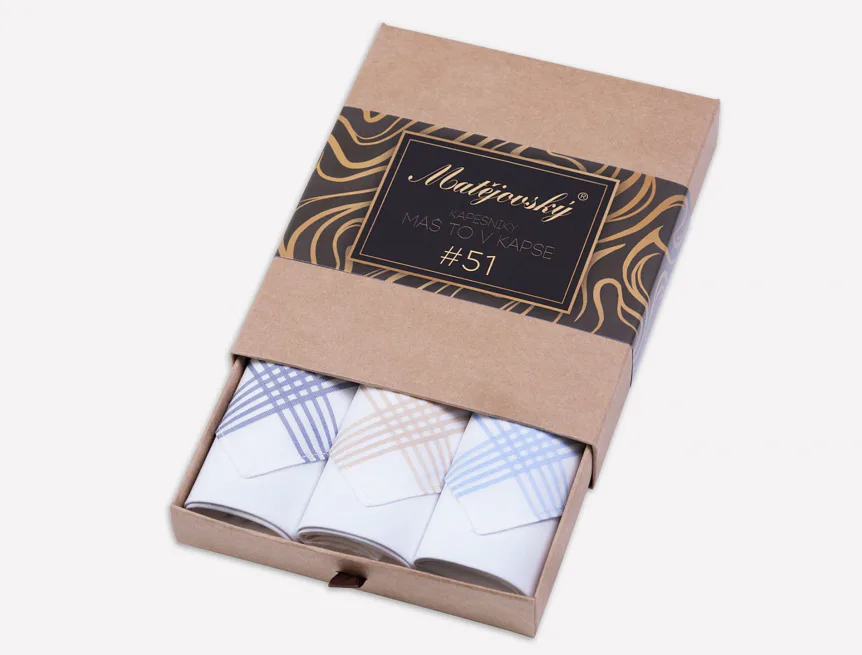 Elegance dotažená do posledního detailu. Tradiční bavlněný kapesník je nejen praktickým pomocníkem v celé řadě každodenních okamžiků, ale také symbolem elegance a vytříbeného stylu. Sada tří barevně sladěných látkových kapesníků, které vynikají hebkostí a savostí, se i díky originálnímu balení stane ideálním dárkem pro moderního gentlemana.
