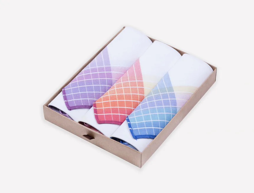 Elegance dotažená do posledního detailu. Tradiční bavlněný kapesník je nejen praktickým pomocníkem v celé řadě každodenních okamžiků, ale také symbolem elegance a vytříbeného stylu. Sada tří barevně sladěných látkových kapesníků, které vynikají hebkostí a savostí, se i díky originálnímu balení stane ideálním dárkem pro každou dámu.