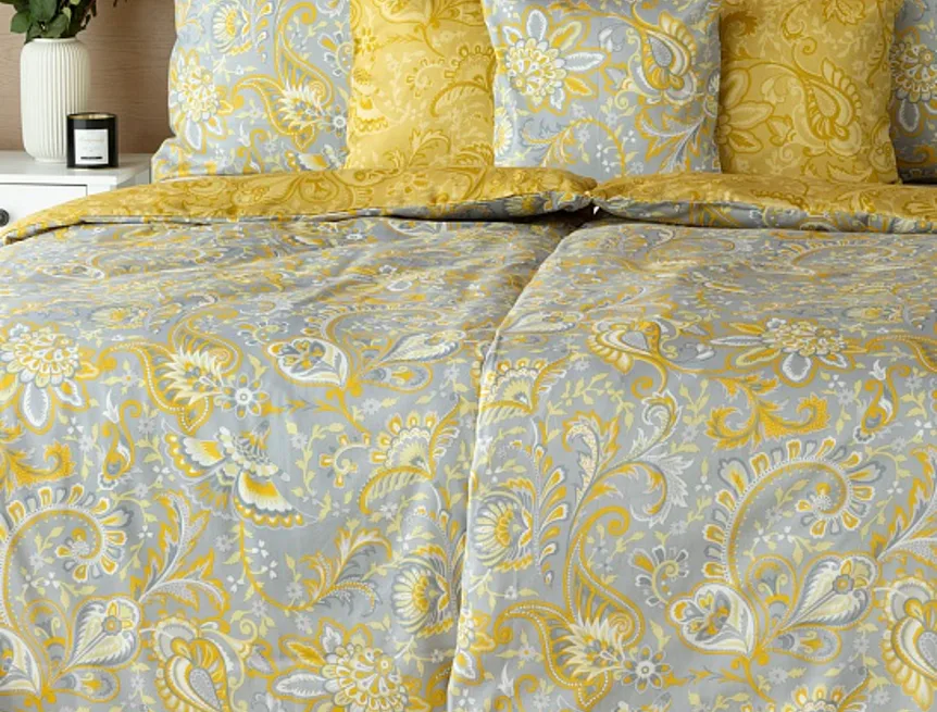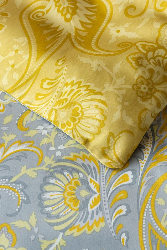 Romantický florálny vzor na posteľnej bielizni KASHMIR vynikne vďaka šarmantne zladeným tónom sivej a zlatistookrovej. Vrchná strana posteľnej bielizne zodpovedá fotografii, spodná kombinuje tmavšie odtiene okrovej. Obliečky na malé vankúšiky 40/40 cm sú šité z metráže v oboch farebných vyhotoveniach, vďaka rozmanitosti vzoru je každý iný. Posteľná bielizeň má komfortný zipsový uzáver.