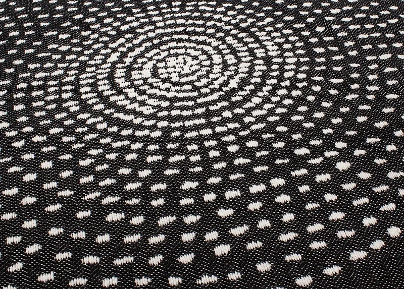 Dekorační tkaný kobereček s krásnou texturou je novinkou v sortimentu a doplňuje designové řady nejoblíbenějších geometrických motivů. Nyní si můžete sladit interiér opravdu do posledního detailu. Dezén CIRCLE na první pohled zaujme výrazným jednoduchým vzorem v černobílém provedení. Druhá strana koberečku je provedena inverzně (viz další foto). Kobereček je po celém obvodu olemován barevně sladěnou lemovkou.