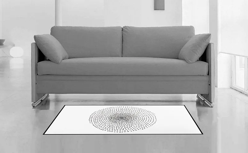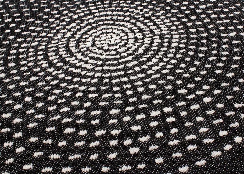 Dekorační tkaný kobereček s krásnou texturou je novinkou v sortimentu a doplňuje designové řady nejoblíbenějších geometrických motivů. Nyní si můžete sladit interiér opravdu do posledního detailu. Dezén CIRCLE na první pohled zaujme výrazným jednoduchým vzorem v černobílém provedení. Druhá strana koberečku je provedena inverzně (viz další foto). Kobereček je po celém obvodu olemován barevně sladěnou lemovkou.