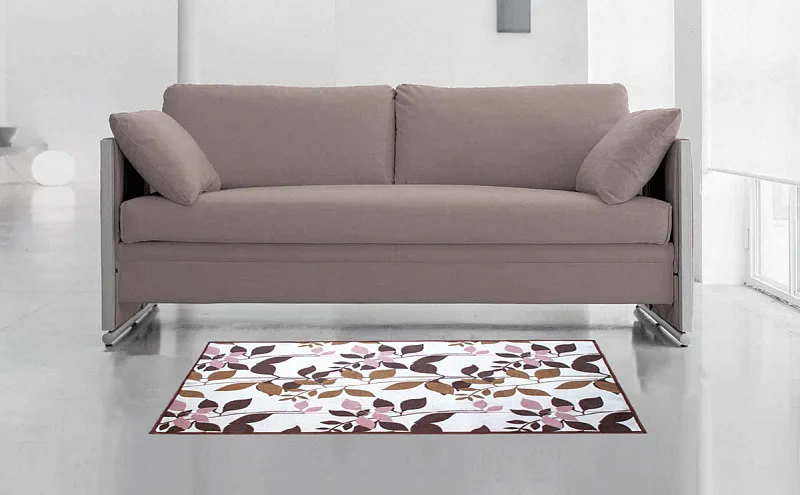 Dekorační tkaný kobereček s krásnou texturou je novinkou v sortimentu a doplňuje designové řady nejoblíbenějších geometrických motivů. Nyní si můžete sladit interiér opravdu do posledního detailu. Dezén DELICATE na první pohled zaujme elegantním florálním motivem v odstínech světle a tmavě hnědé v kombinaci s pastelovou růžovou na bílém podkladu. Druhá strana koberečku je provedena inverzně (viz další foto). Kobereček je po celém obvodu olemován barevně sladěnou lemovkou.