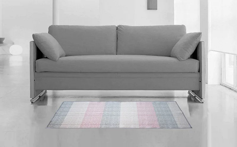 Dekorační tkaný kobereček s krásnou texturou je novinkou v sortimentu a doplňuje designové řady nejoblíbenějších geometrických motivů. Nyní si můžete sladit interiér opravdu do posledního detailu. Dezén MANGO na první pohled zaujme elegantním károvaným motivem v odstínech pastelové lososové, krémové a šedé. Druhá strana koberečku je provedena inverzně (viz další foto). Kobereček je po celém obvodu olemován barevně sladěnou lemovkou.
