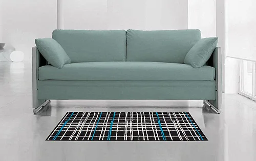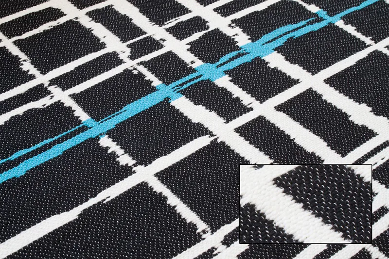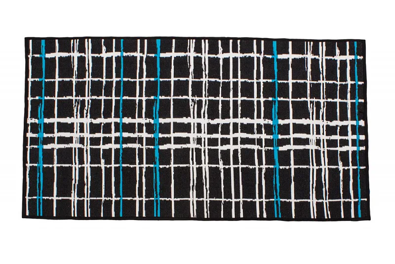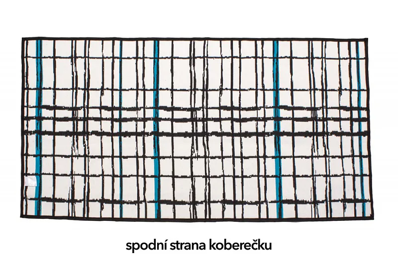 Dekorační tkaný kobereček s krásnou texturou je novinkou v sortimentu a doplňuje designové řady nejoblíbenějších geometrických motivů. Nyní si můžete sladit interiér opravdu do posledního detailu. Dezén MONTEGO na první pohled zaujme atraktivním černobílým vzorem doplněným o tyrkysové prvky. Druhá strana koberečku je provedena inverzně (bílý podklad, černý vzor - viz další foto). Kobereček je po celém obvodu olemován barevně sladěnou lemovkou.