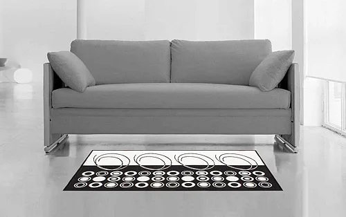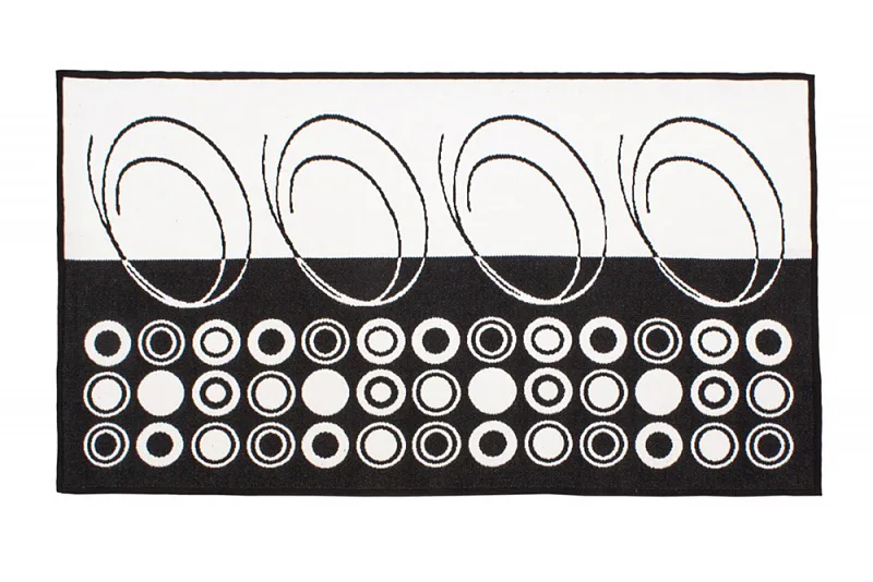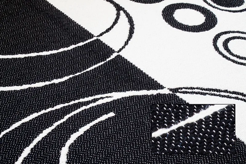 Dekorační tkaný kobereček s krásnou texturou je novinkou v sortimentu a doplňuje designové řady nejoblíbenějších geometrických motivů. Nyní si můžete sladit interiér opravdu do posledního detailu. Dezén ROYAL BLACK na první pohled zaujme atraktivním černobílým vzorem. Druhá strana koberečku je provedena inverzně (viz další foto). Kobereček je po celém obvodu olemován barevně sladěnou lemovkou.