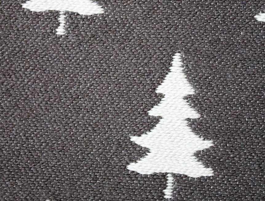 Dekorační tkaný kobereček s krásnou texturou je novinkou v sortimentu a doplňuje designové řady nejoblíbenějších geometrických motivů. Nyní si můžete sladit interiér opravdu do posledního detailu. Dezén Stromečky na první pohled zaujme výrazným moderním vzorem v šedobílém provedení. Druhá strana koberečku je provedena inverzně (viz další foto). Kobereček je po celém obvodu olemován barevně sladěnou lemovkou.