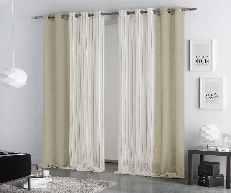 Limitovaná kolekce kombinovaných dekoračních závěsů přináší mimořádný designový kousek. Dodejte interiéru styl okouzlujícím závěsem CORAL SAND. Dokonalý odstín jemné pískové barvy na částečně zatemňující designové části se skvěle doplňuje s průhledným bílým tylem zdobeným svislými pískovými proužky. Obě části na sebe plynule navazují a tvoří tak originální celek.