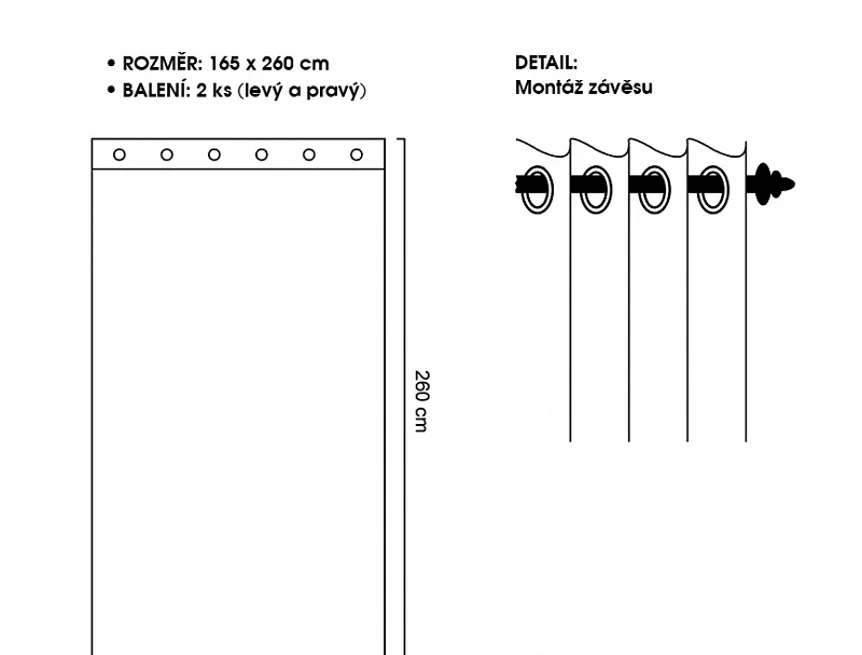 Rozměr jednoho závěsu (ŠxV): 165 x 260 cm