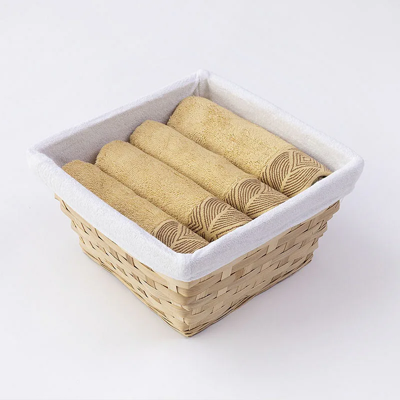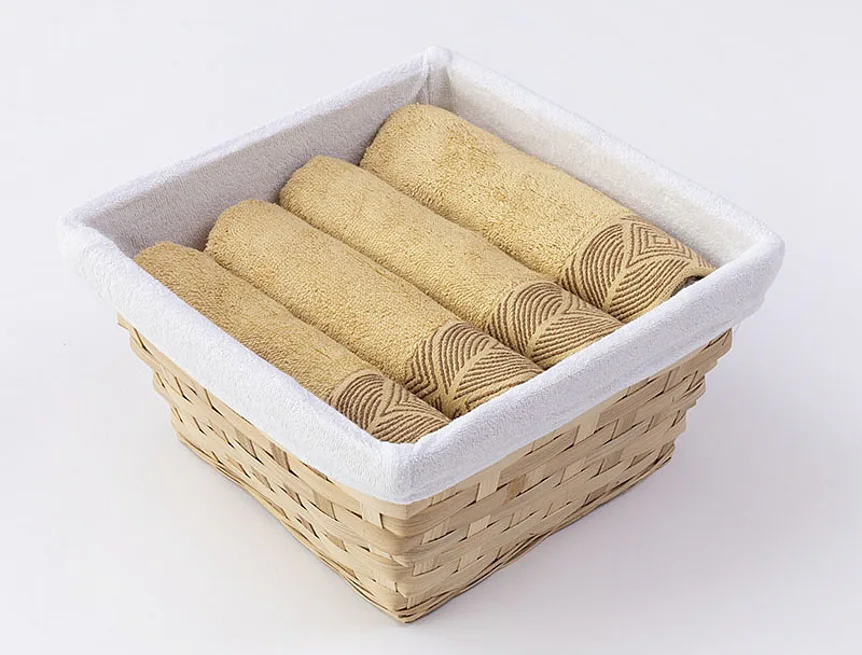 Košík s textilní vsadkou je součástí balení. Ručníky jsou opatřeny poutkem.
