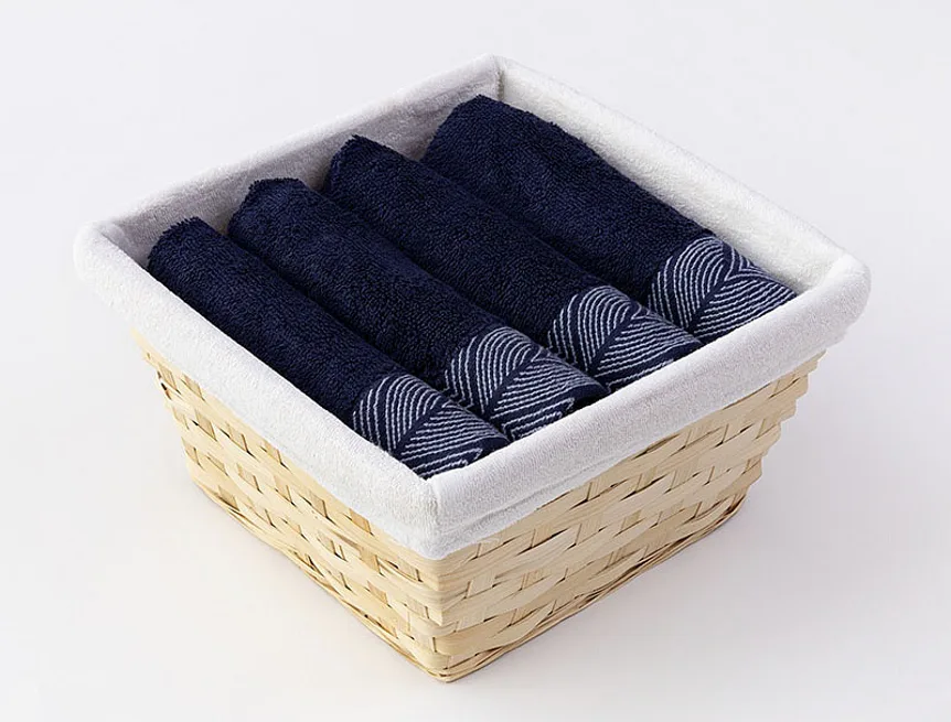 Košík s textilní vsadkou je součástí balení. Ručníky jsou opatřeny poutkem.