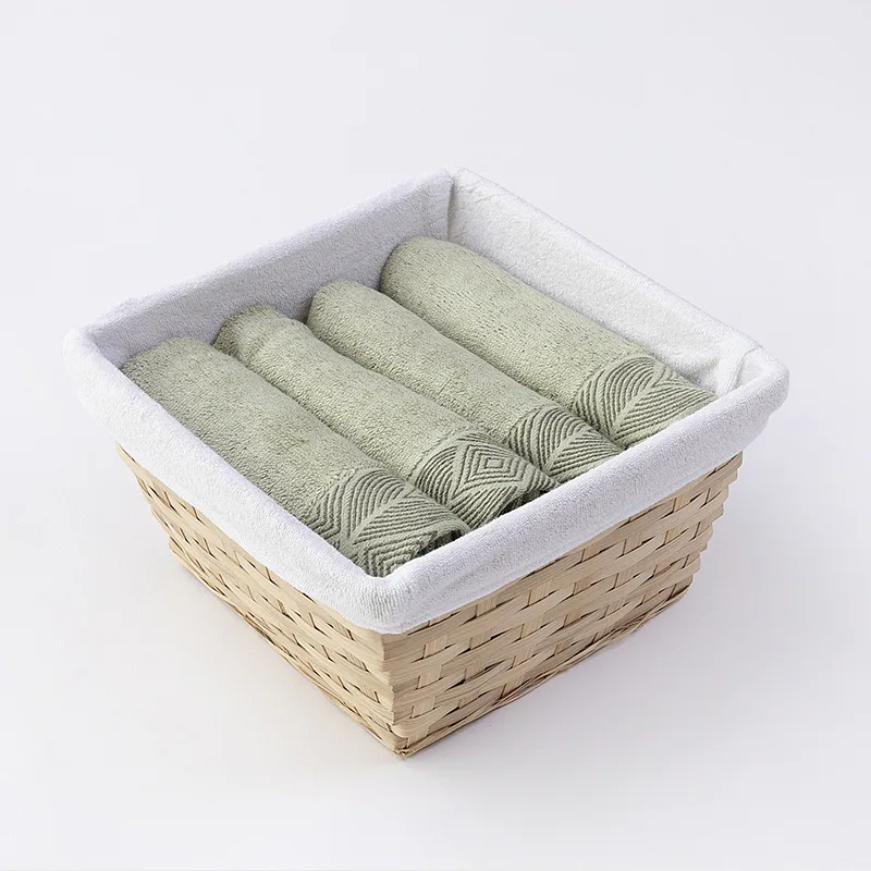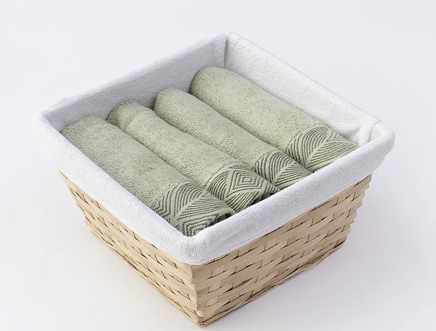 Košík s textilní vsadkou je součástí balení. Ručníky jsou opatřeny poutkem.