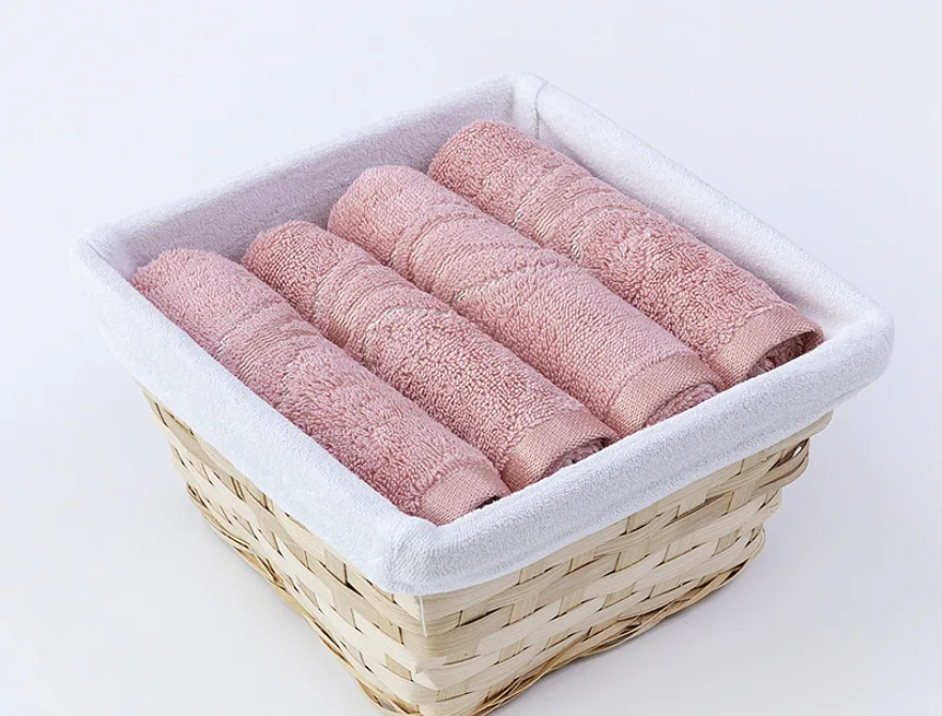 Košík s textilní vsadkou je součástí balení. Ručníky jsou opatřeny poutkem.