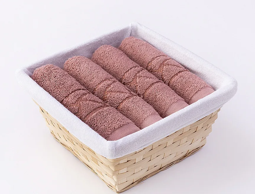 Košík s textilní vsadkou je součástí balení. Ručníky jsou opatřeny poutkem.