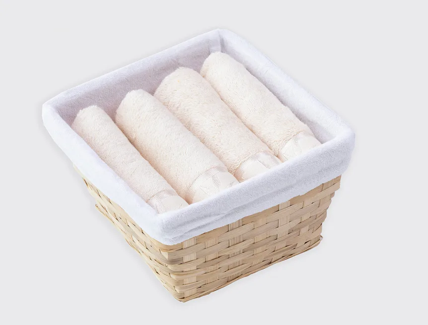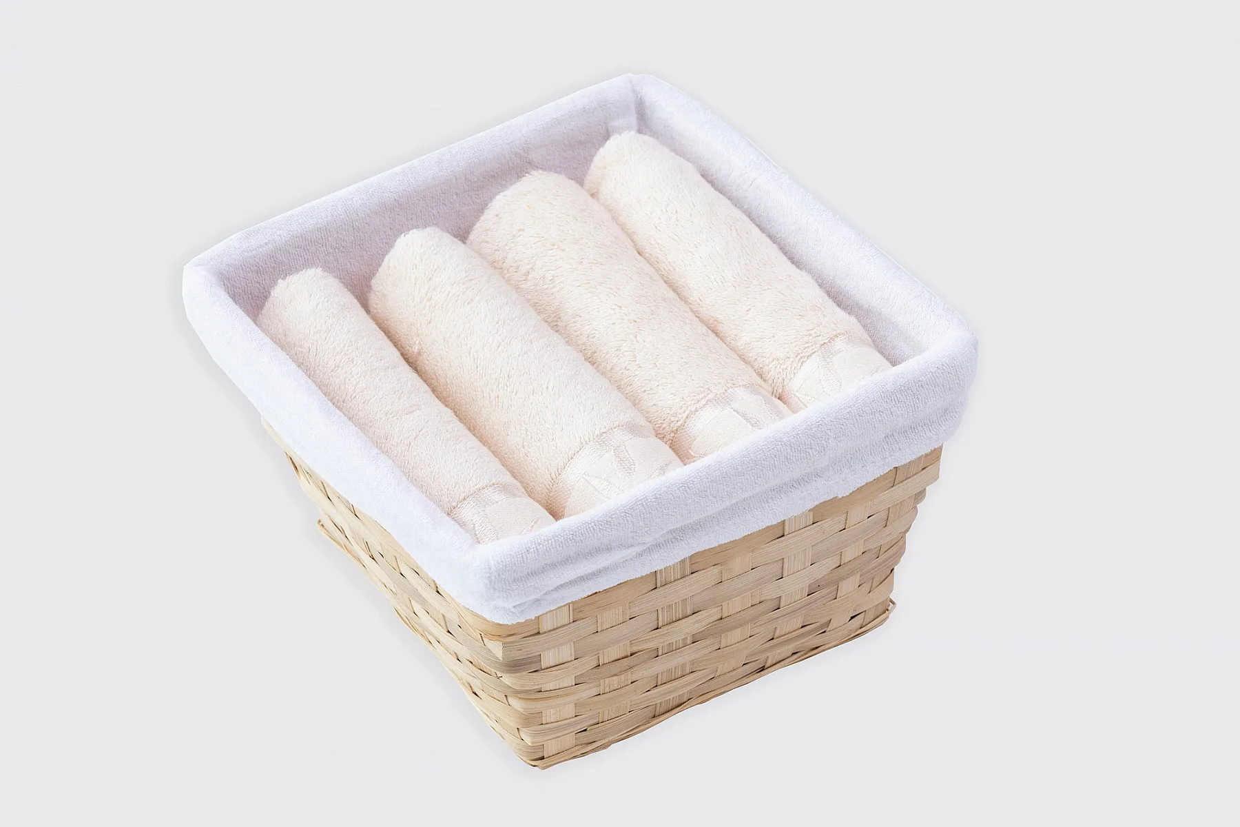 Elegantní a praktické balení ručníků Luna se stane originálním dárkem. Košík obsahuje 4 ks bambusových ručníků v rozměrech 30x50 cm.