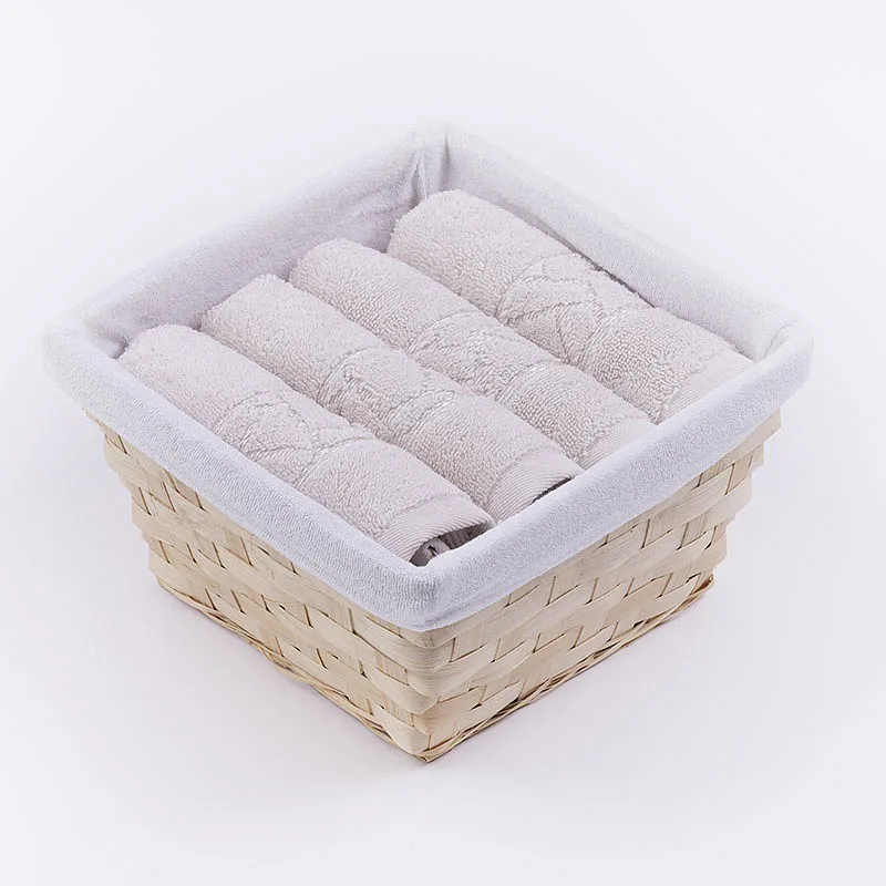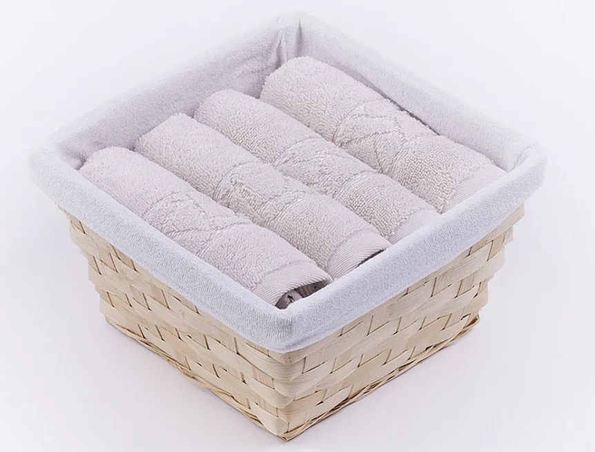 Košík s textilní vsadkou je součástí balení. Ručníky jsou opatřeny poutkem.