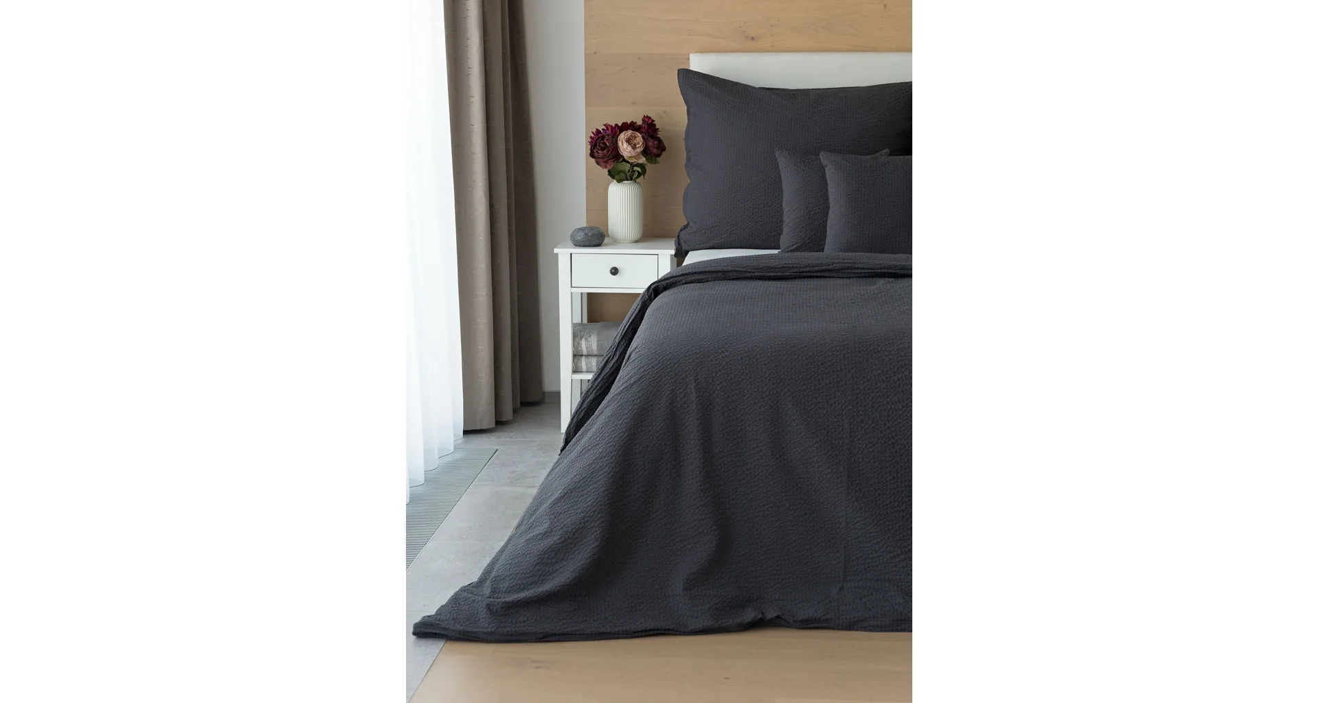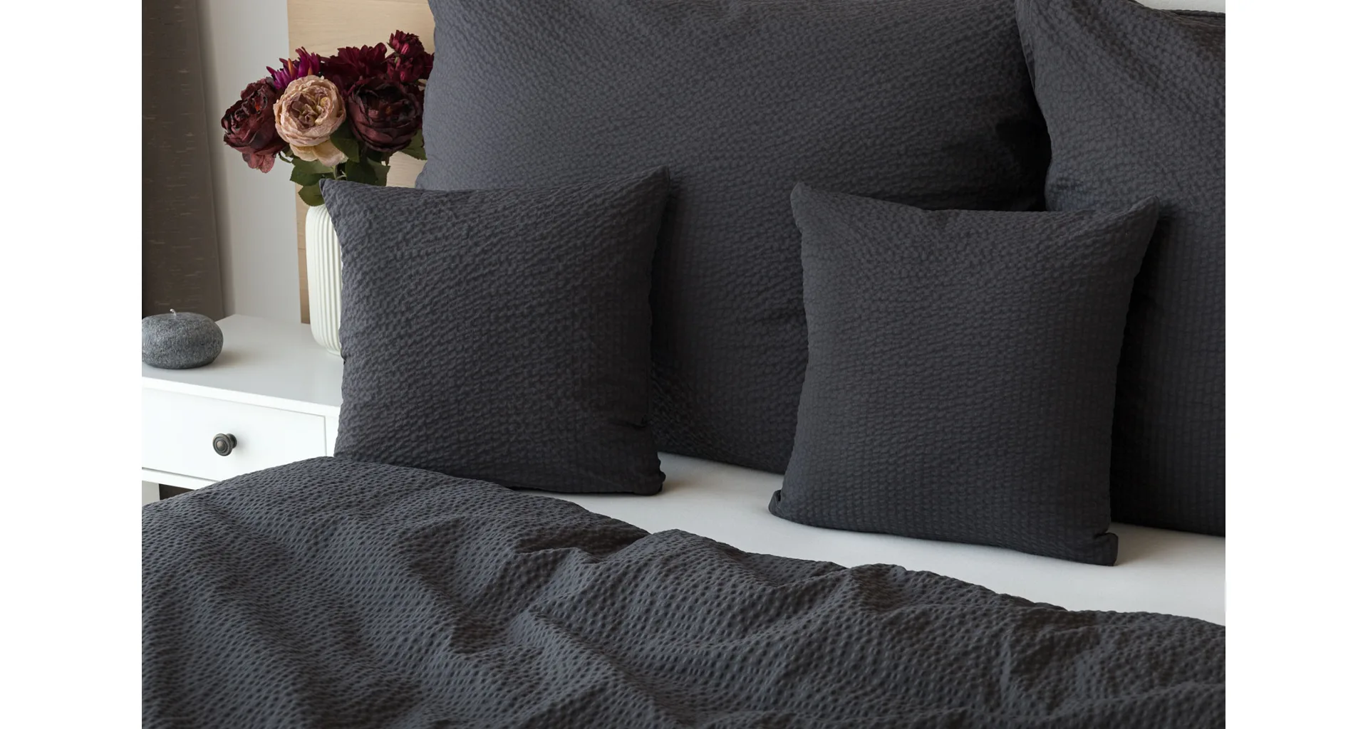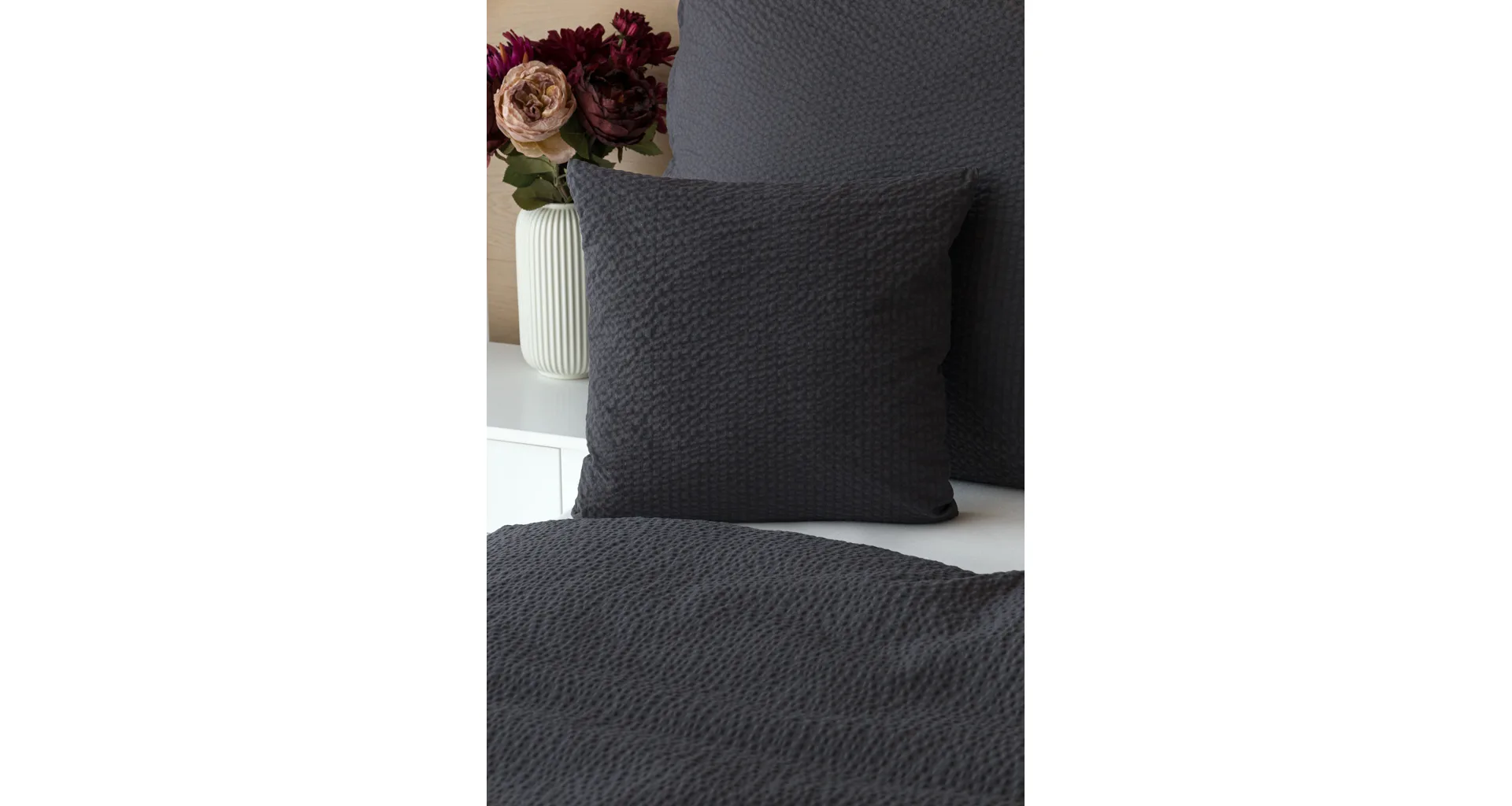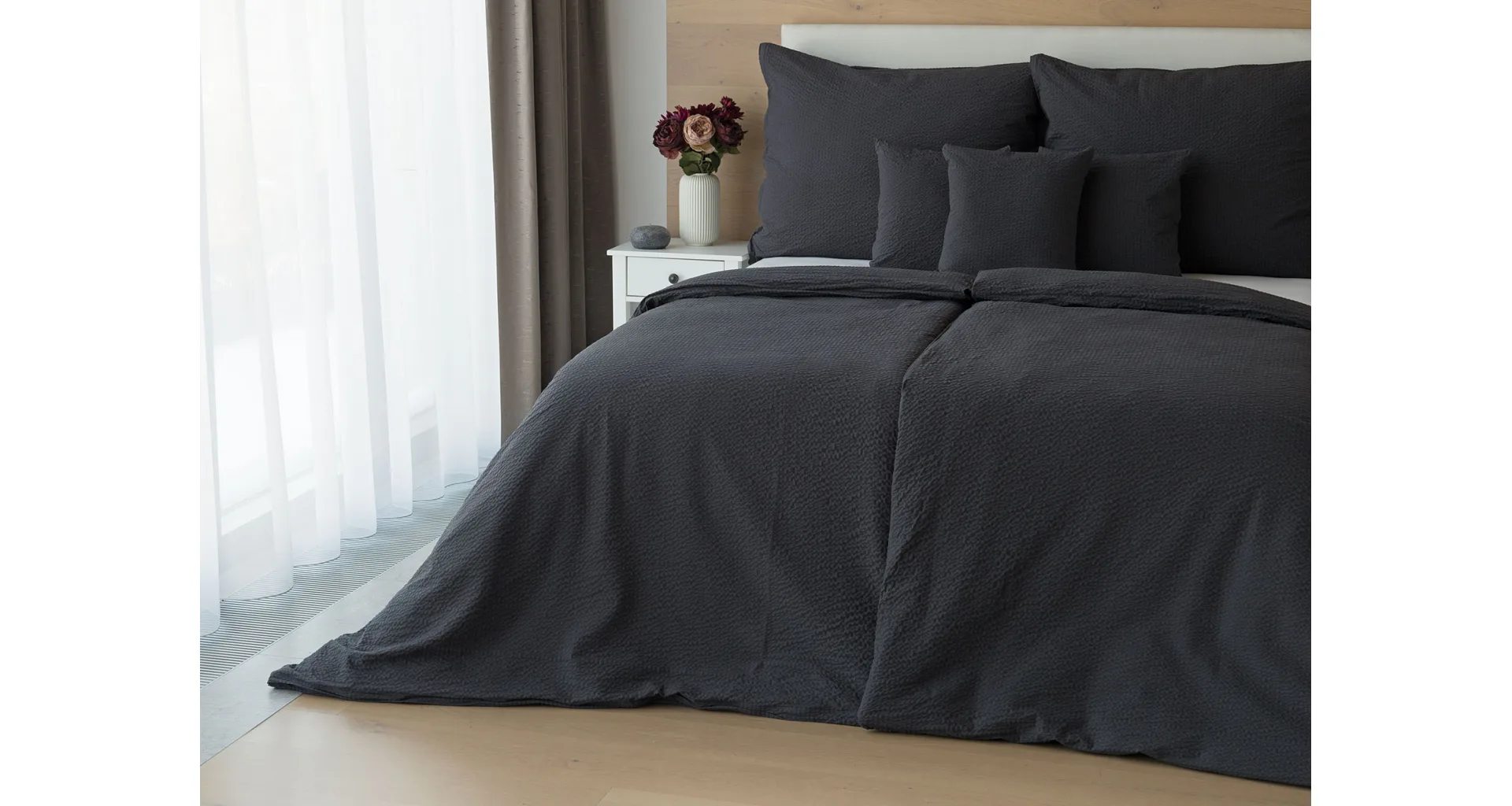 Luxusná tmavosivá krepová posteľná bielizeň vo vyhotovení kvalitnej 100 % bavlny je vybavená komfortným zipsovým uzáverom. Posteľná bielizeň sa ľahko udržiava – nežehlí sa.