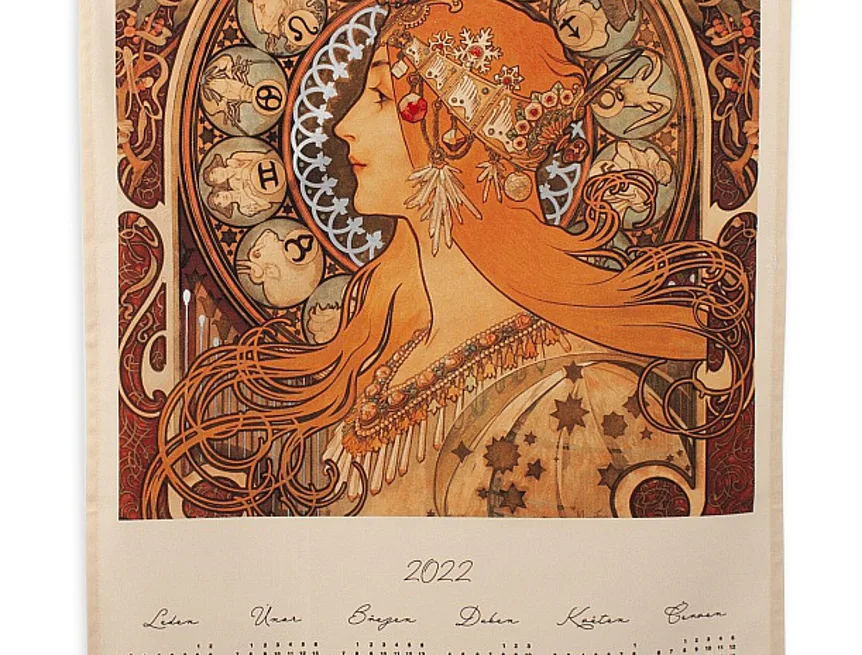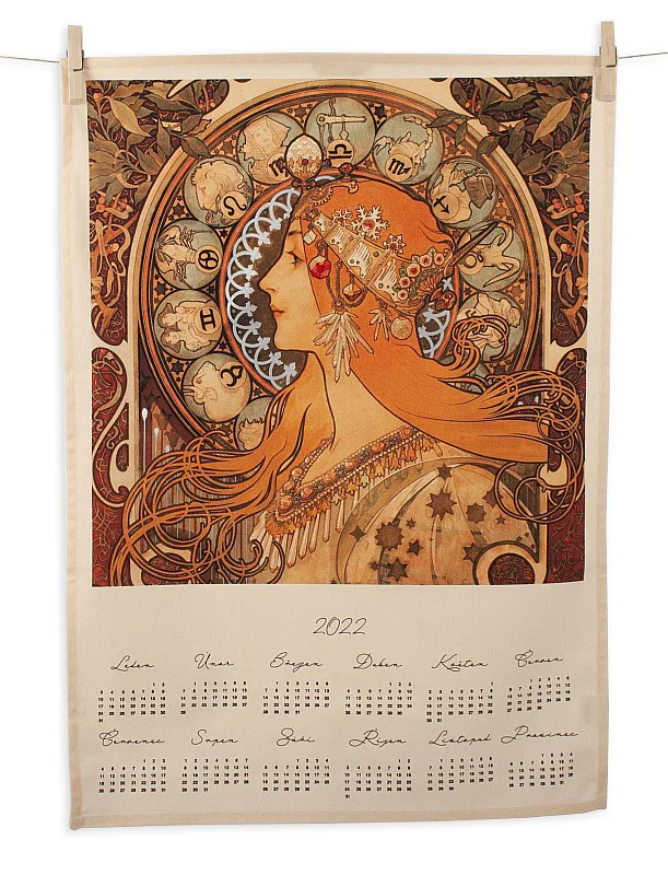 Bavlněný Kalendář s kresbou Alfonse Muchy vnese do vaší kuchyně jediněčnou atmosféru. Je už jen na vás, jestli bude sloužit jako praktický pomocník v kuchyni, nebo bude její ozdobou po celý rok. Třeba vystavený na zdi - stejně tak, jak to známe z domácností našich babiček.