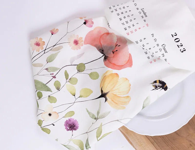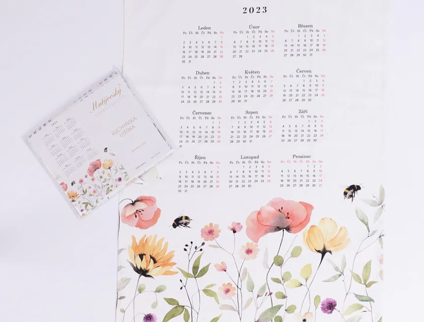 Bavlněný Kalendář s něžným motivem lučního kvítí může být originální ozdobou i praktickým doplňkem vaší kuchyně, případně milým dárkem pro vaše blízké.