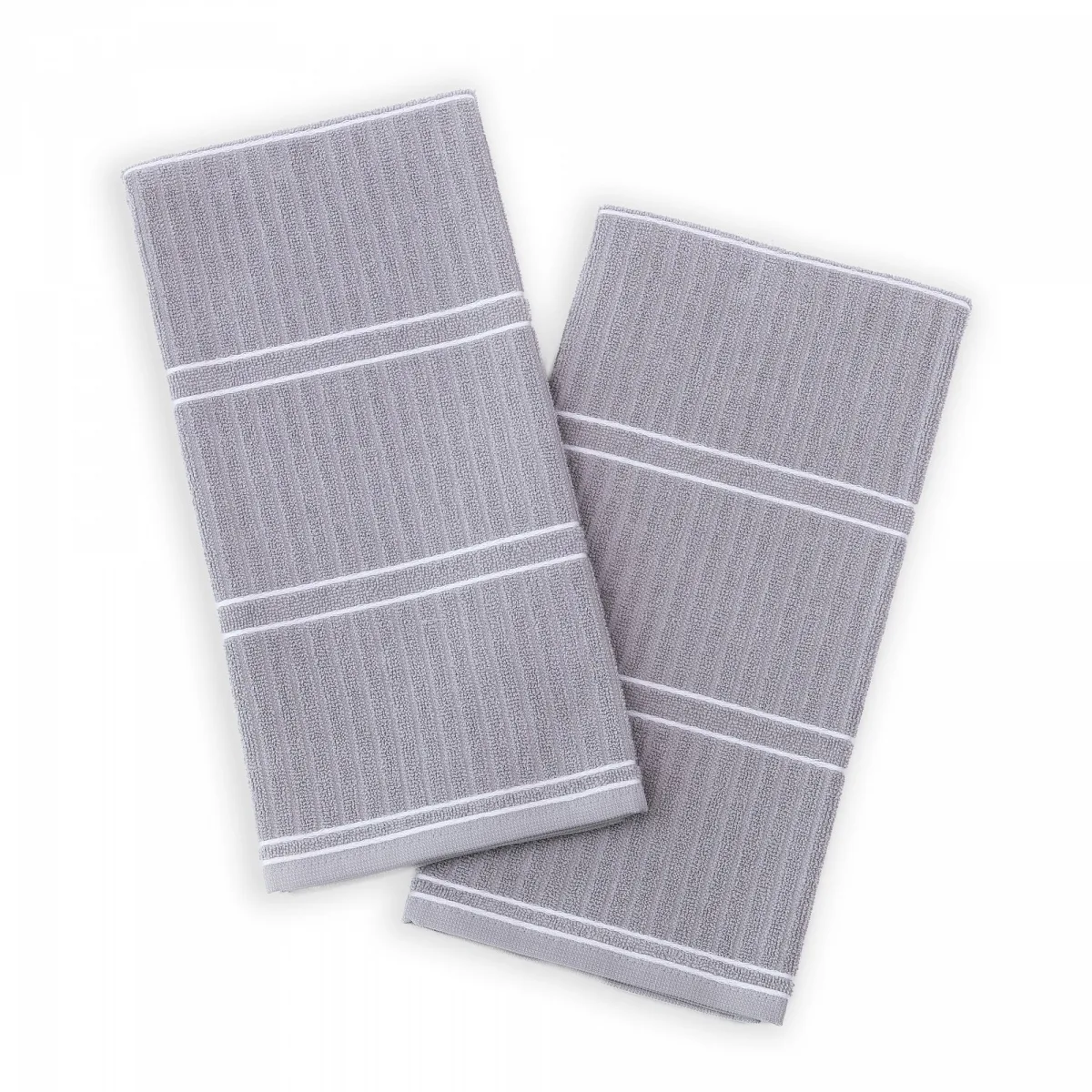 Kuchyňské utěrky Arona upoutají vaši pozornost moderním designem - vytkaný proužkovaný vzor vyniká na lícové straně smyčkového froté. Spodní stranu utěrky tvoří odlehčené froté v inverzním provedení. Originální design utěrek podtrhuje vodorovně vyšitá bílá linka. Utěrky jsou navrženy tak, aby měly ideální absorpční vlastnosti a současně rychle schly. Utěrky jsou ze všech čtyř stran lemované a jsou opatřeny praktickým poutkem.