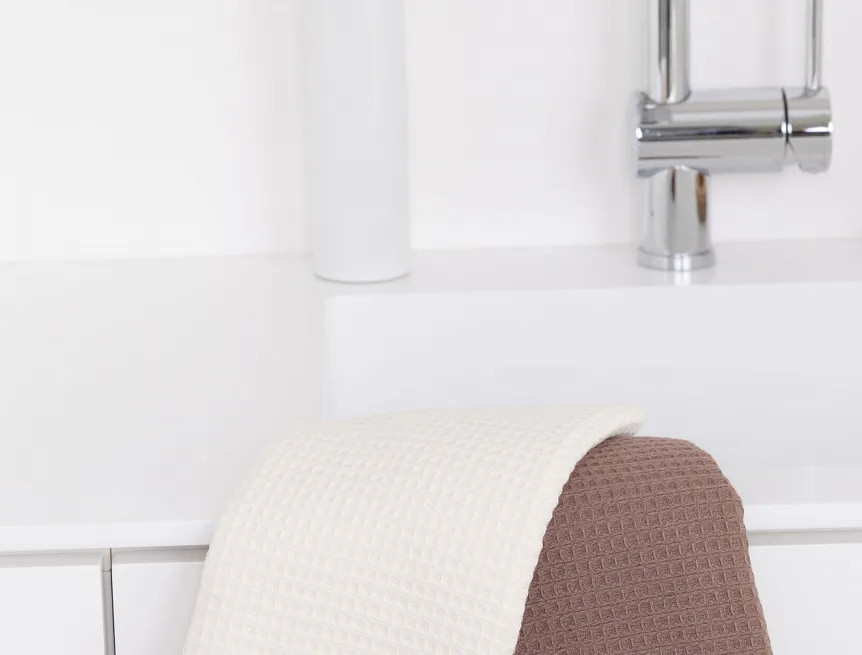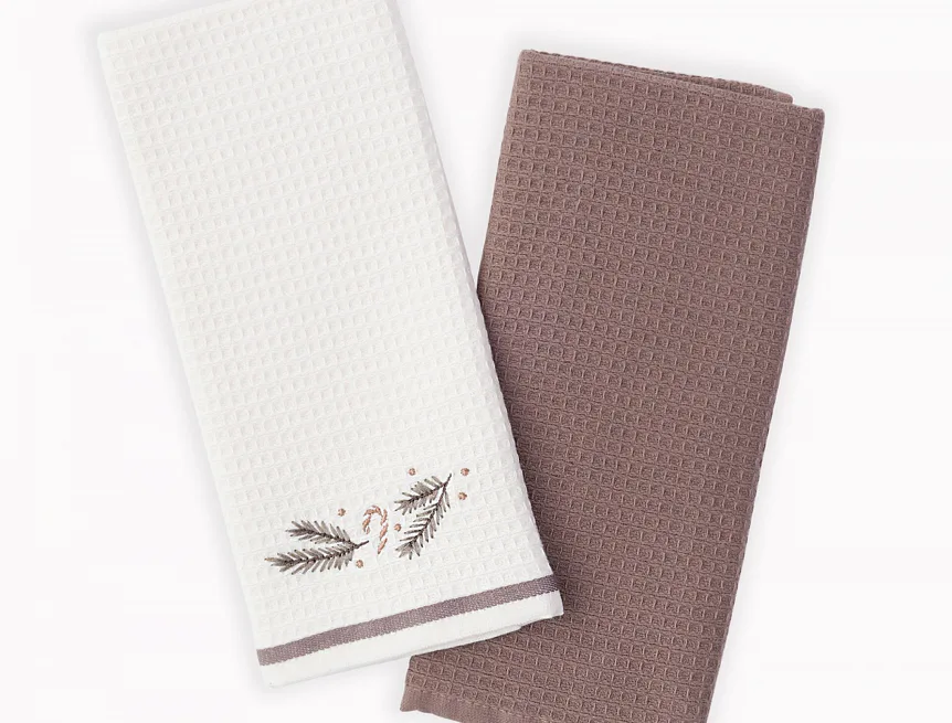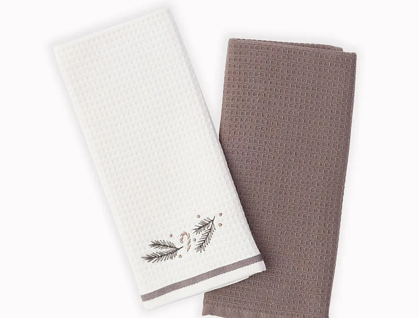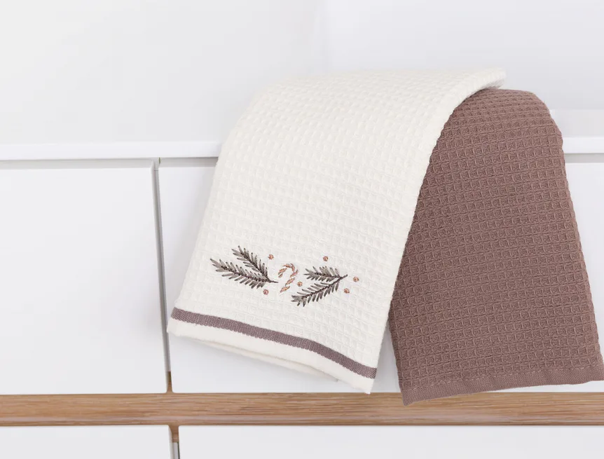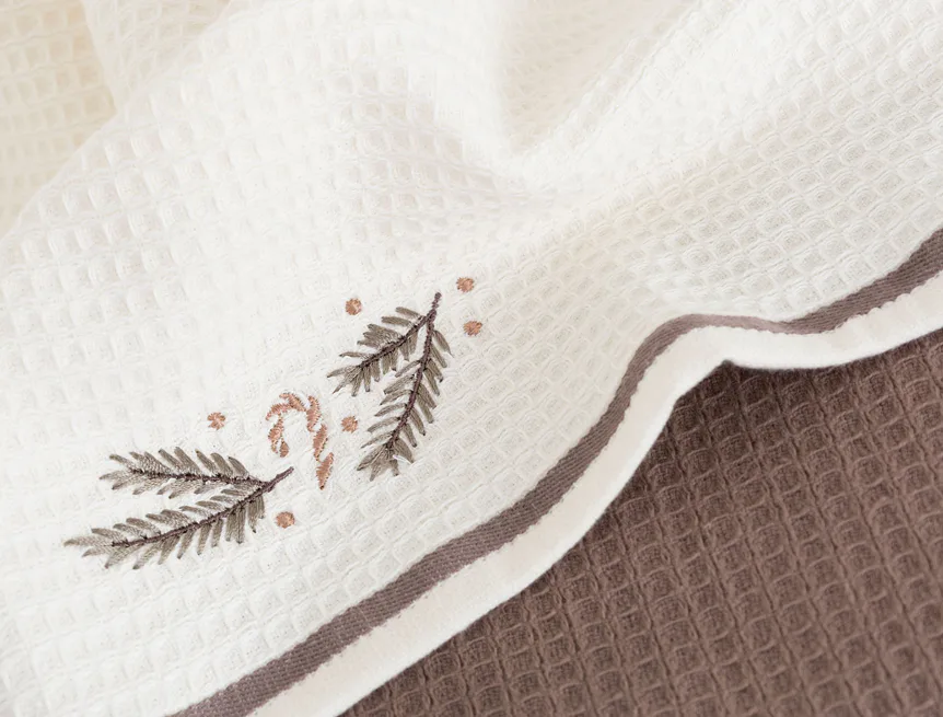 Atraktivní a precizně provedené lesklé výšivky se skvěle doplňují s okouzlujícími barevnými odstíny napříč celou kolekcí vaflových utěrek.