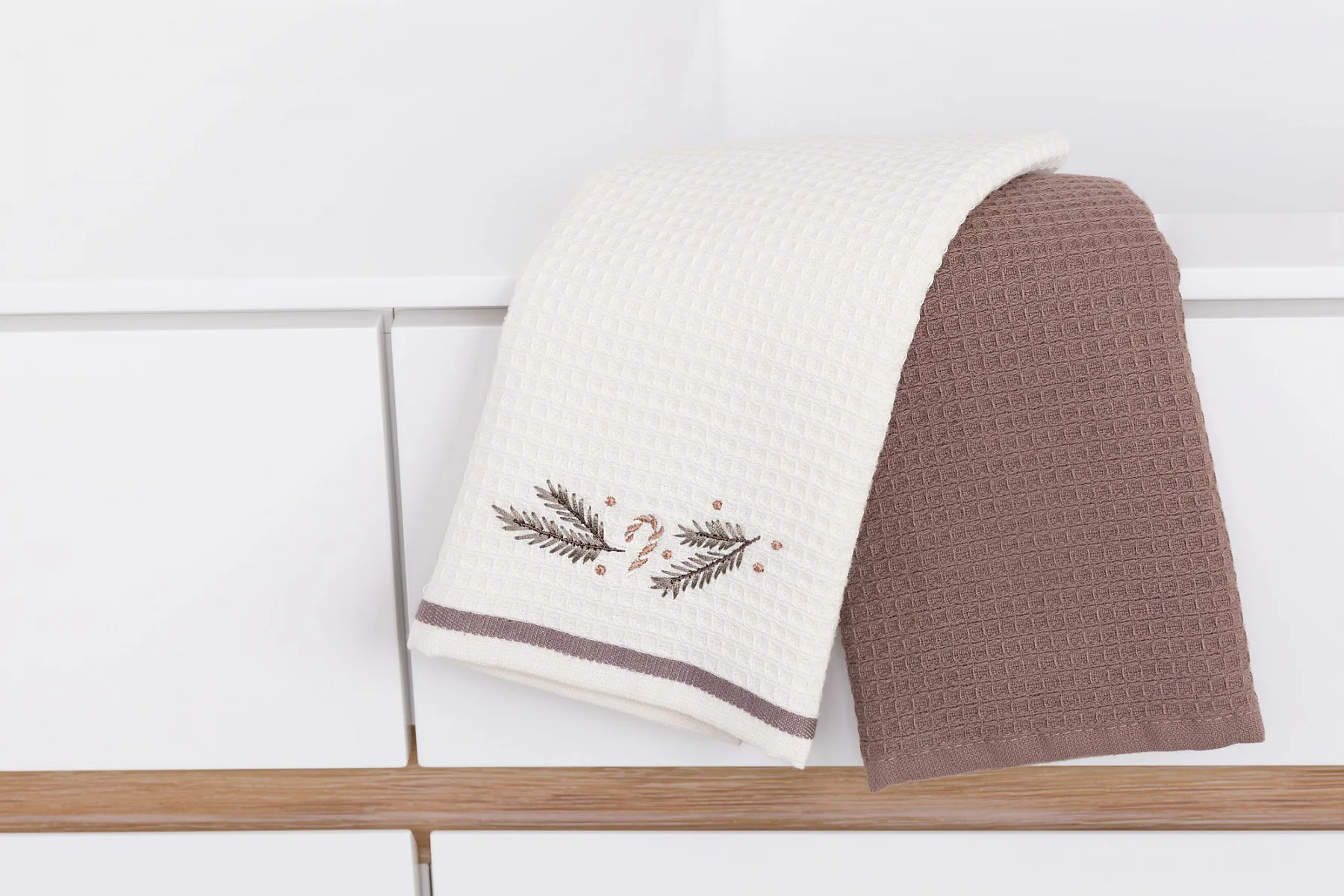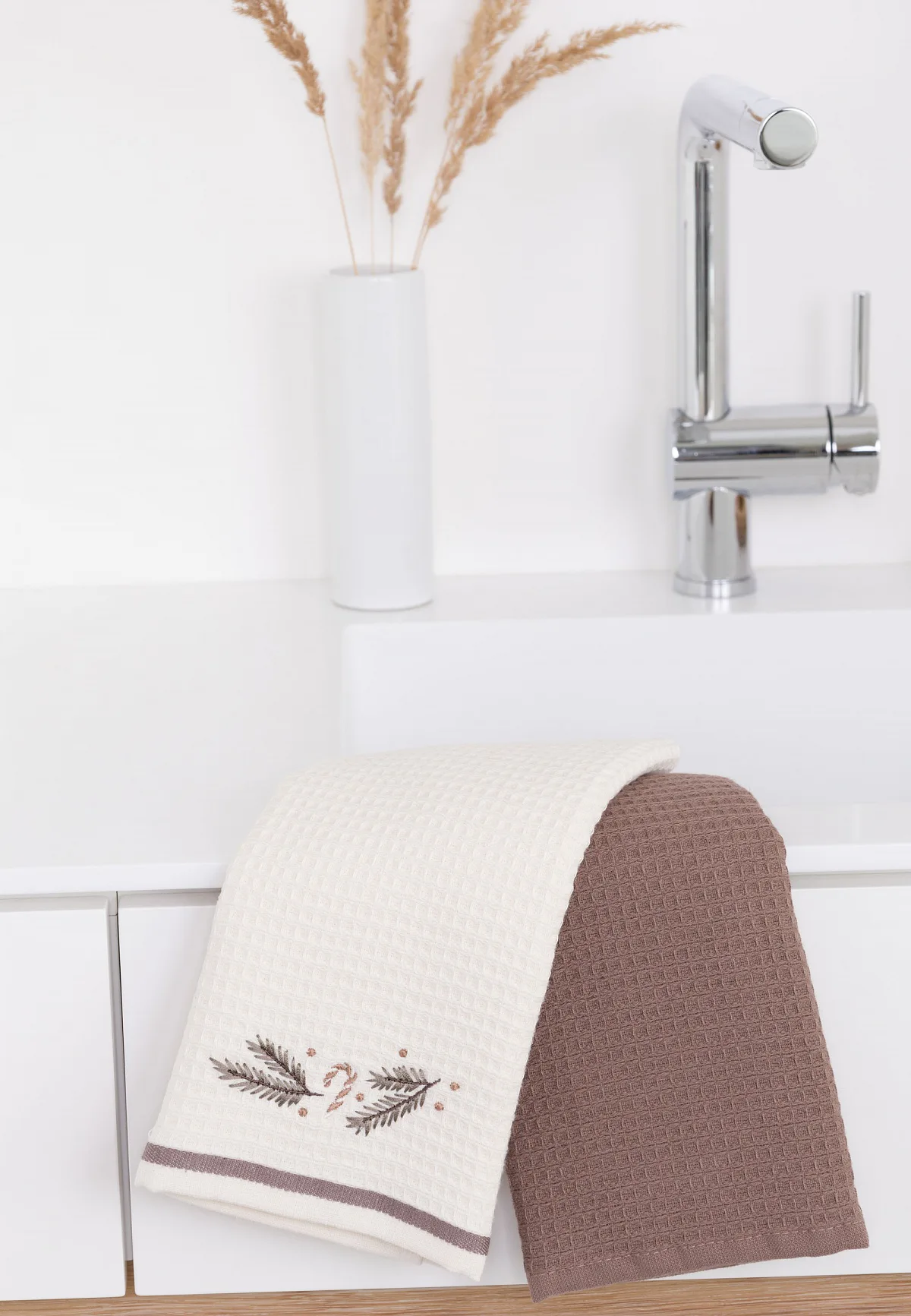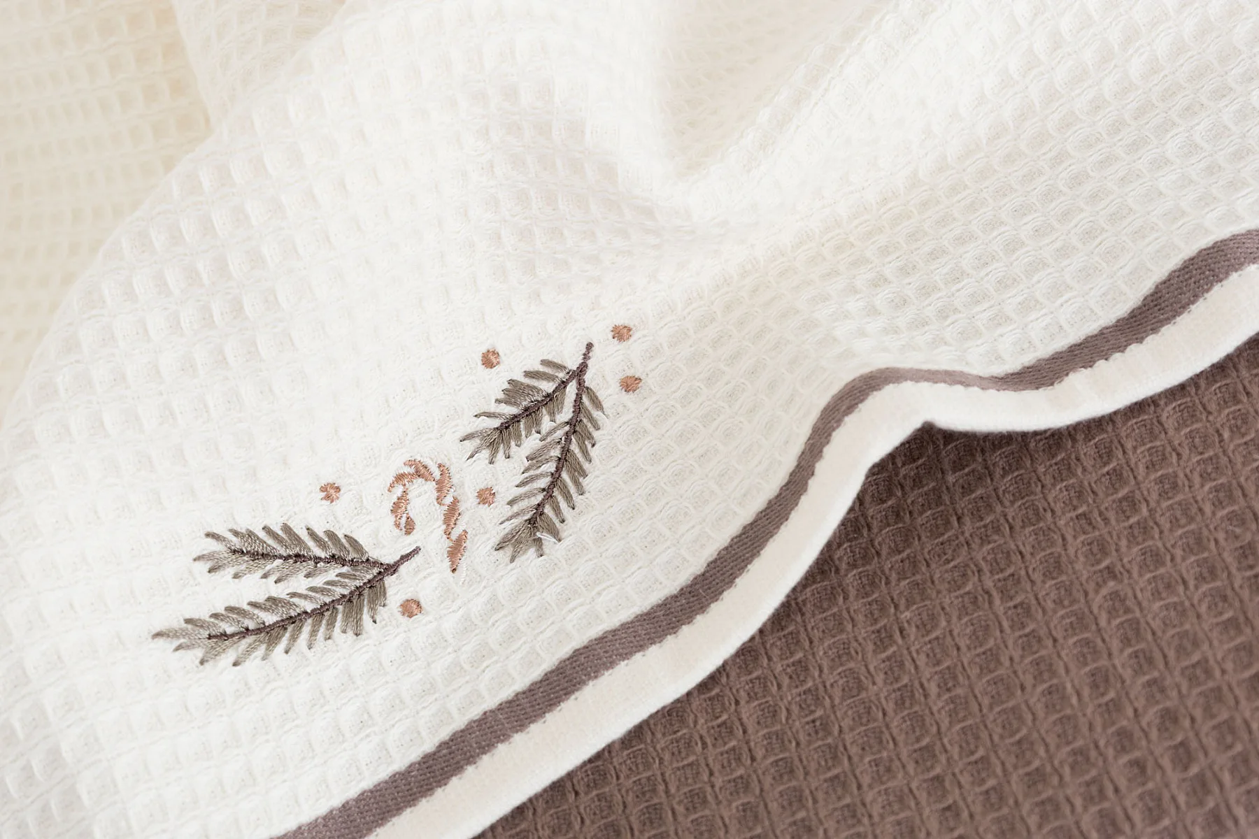 Atraktivní a precizně provedené lesklé výšivky se skvěle doplňují s okouzlujícími barevnými odstíny napříč celou kolekcí vaflových utěrek.