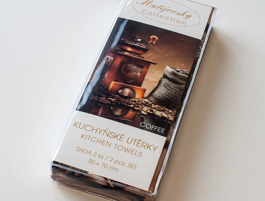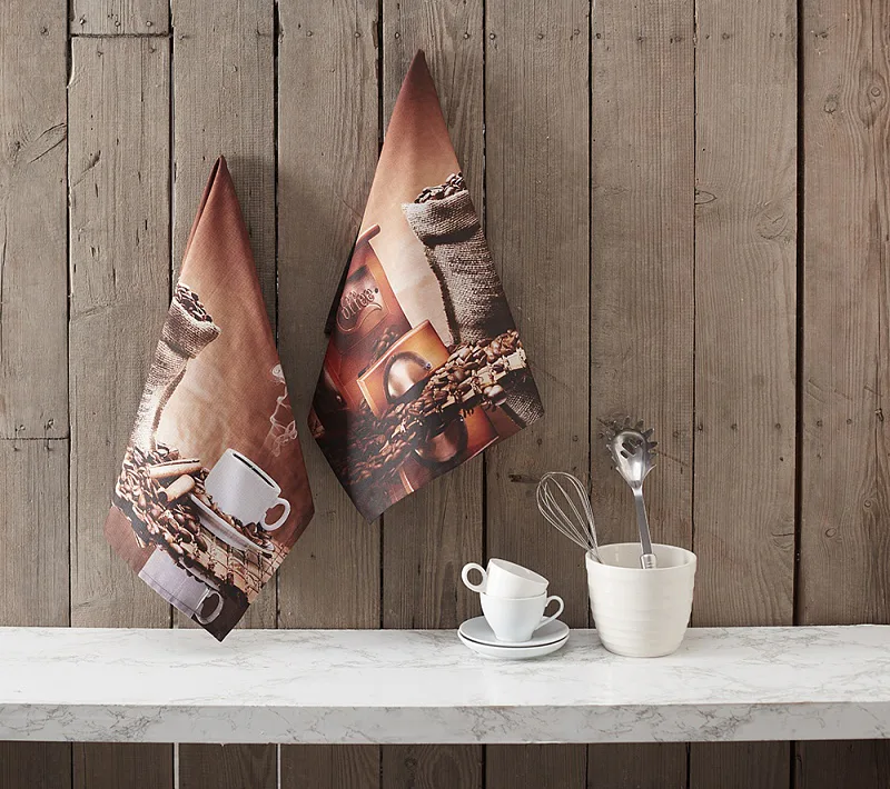 Nová exkluzivní kolekce designových kuchyňských utěrek přináší oblíbený vzor COFFEE. Motiv lahodné vonící kávy osvěží každý moderní interiér kuchyně.