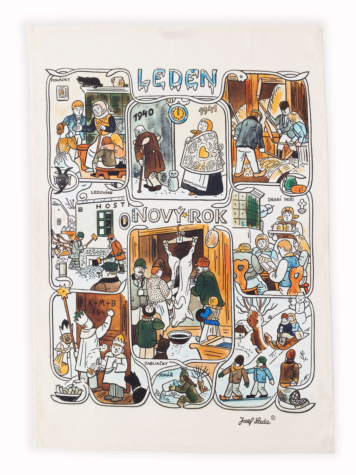 Tento jedinečný set dvanácti kuchyňských utěrek se v kuchyni správné hospodyňky promění v praktického pomocníka, který vykreslí v každé kuchyni nezaměnitelnou ladovskou poetiku, a to po celý rok!