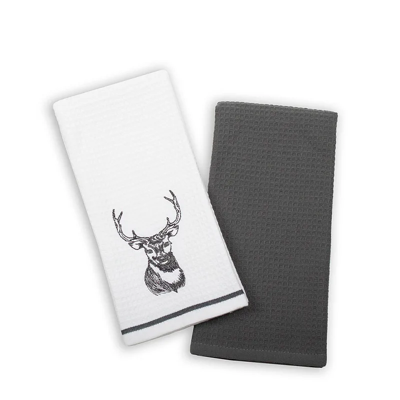 - 1x bílá utěrka s výšivkou a antracitově šedou bordurou