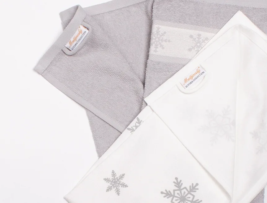 Svátky začínají v kuchyni! Vyšperkujte ji novou kolekcí potištěných froté utěrek ze 100% bavlny.