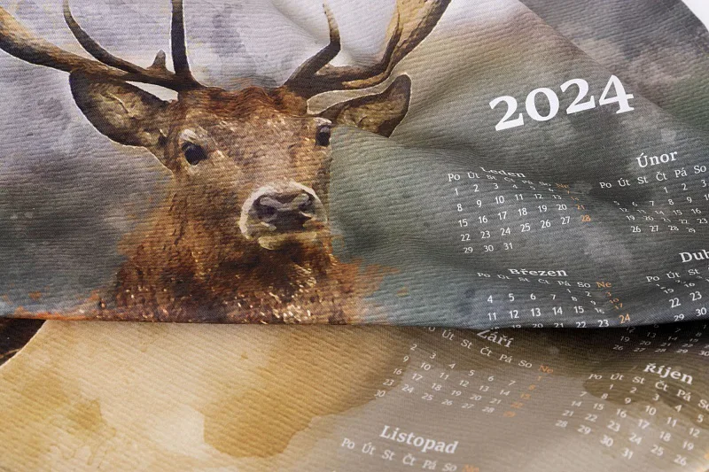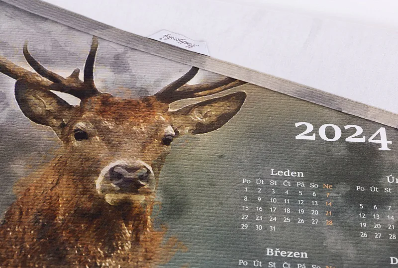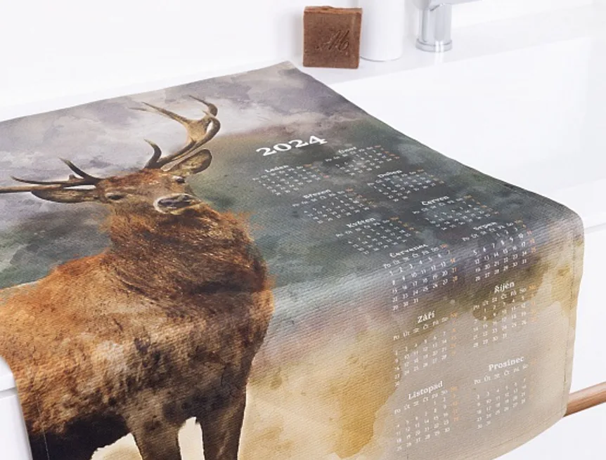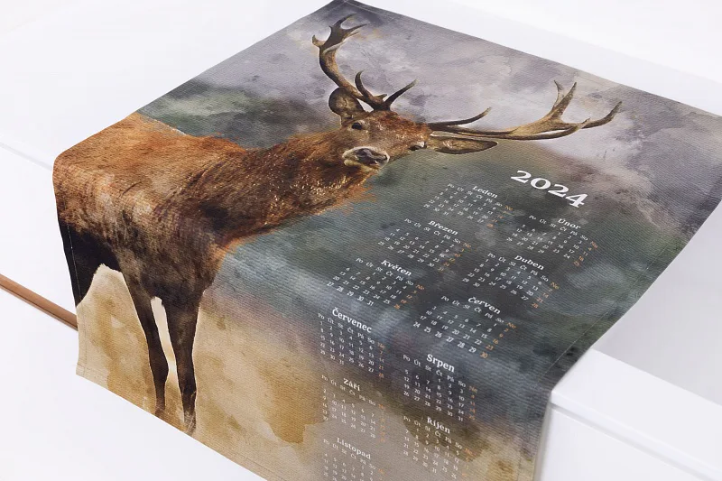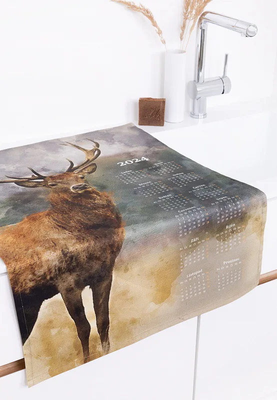 Bavlněný Kalendář Jelen s oblíbeným mysliveckým motivem může být originální ozdobou i praktickým doplňkem vaší kuchyně, případně milým dárkem pro vaše blízké.