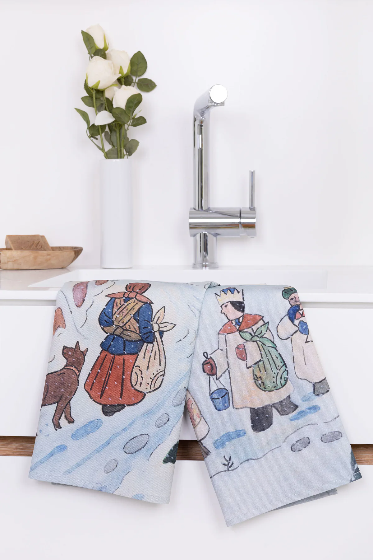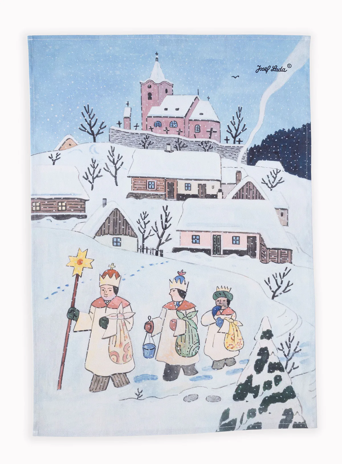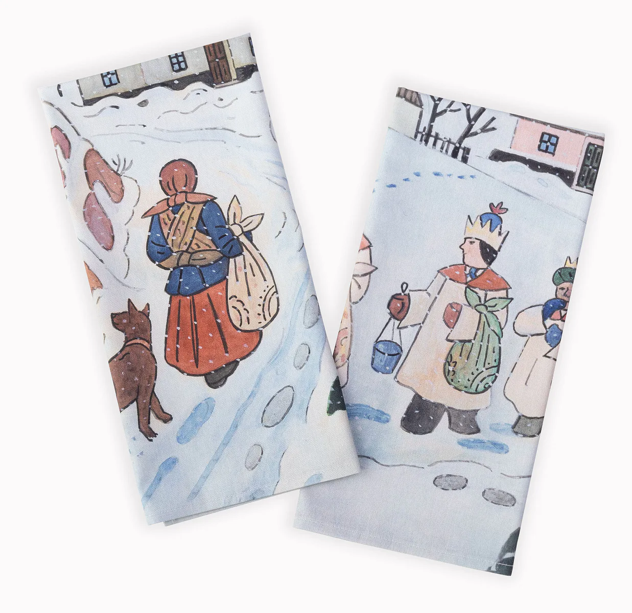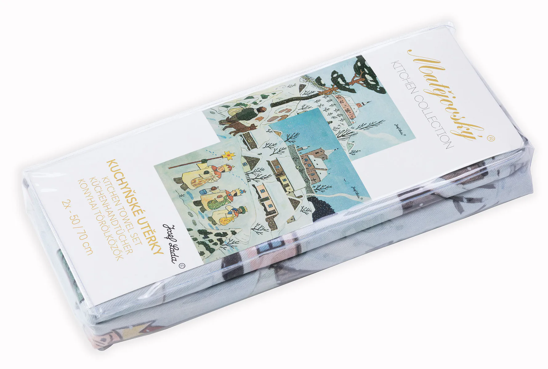 Kuchyňské utěrky Koleda Tříkrálová se díky nejmodernější digitální tiskové technologii pyšní nádhernými barvami a precizními detaily, které vykreslují autentickou ladovskou poetiku.
