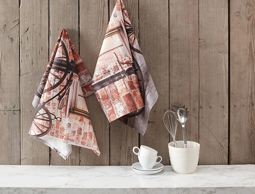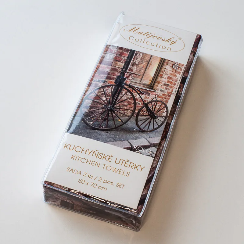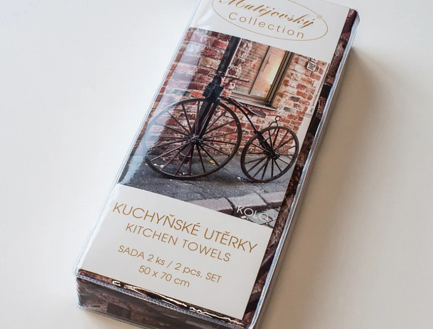 Nová exkluzivní kolekce designových kuchyňských utěrek přináší oblíbený vzor KOLO. Originální motiv vintage kola osvěží každý moderní interiér kuchyně.